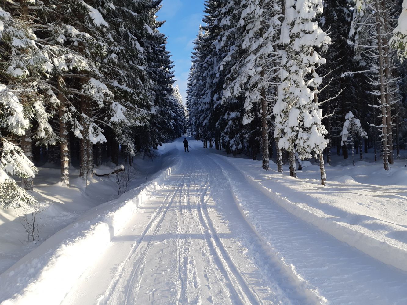 Følg skogsvegen frå start og opp til setra. Det er flatt til vegen deler seg etter 1,5 km. Her er det ei turtavle og skilt, så det er lett å finne vegen. No vert det litt meir stigning, med eit par småkneiker. Dette er ein tur som dei aller fleste vil klare.