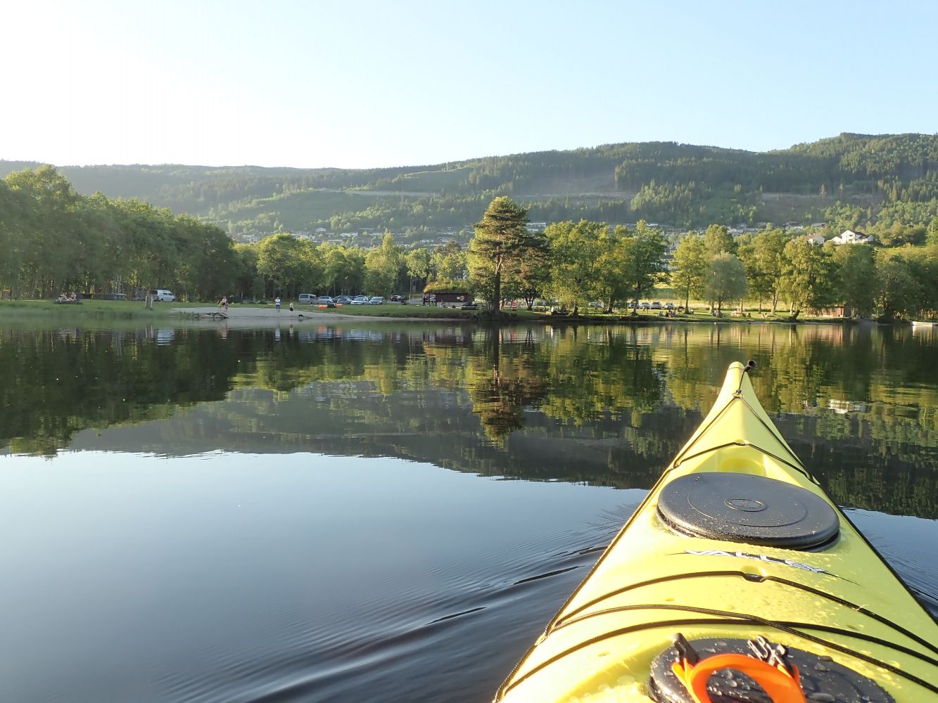Frå badestranda på Årneset kan ein velge om ein vil padle nordsida eller sørsida rundt vatnet.