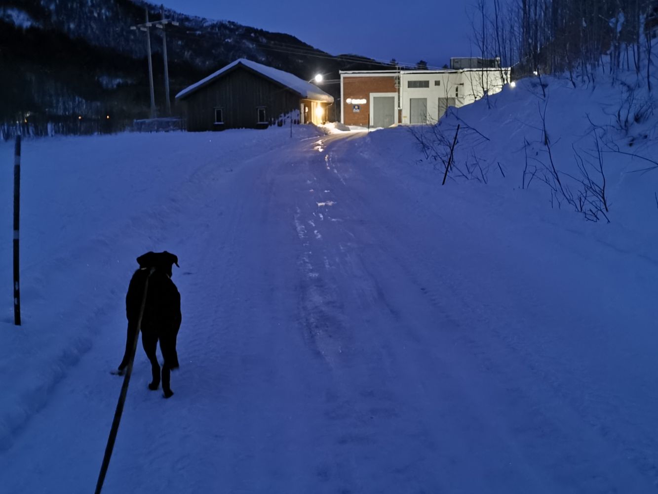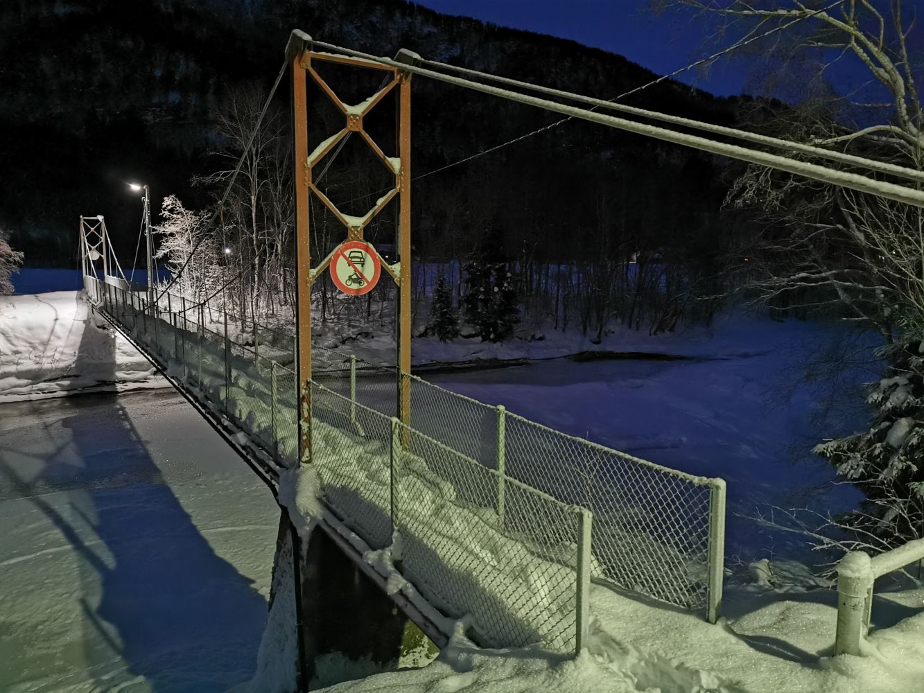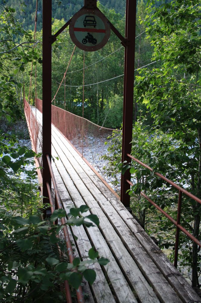 Dersom det er mykje snø over hengebrua, kan du gå turen fram og tilbake same veg. Dette er også eit godt alternativ for den som helst vil gå der det er lite trafikk.
