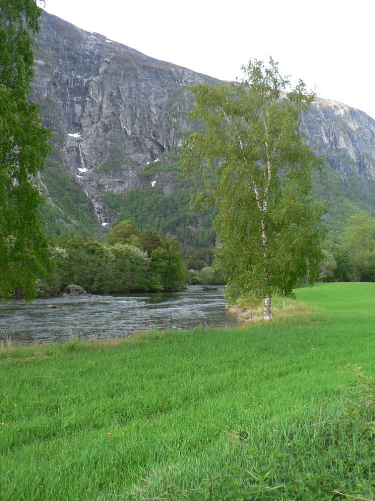 Som et alternativ kan en følge en sti langsmed elva fra vegkrysset etter rettstrekningen. Denne slynger seg mellom store steiner og ned til fiskeplassene ved elva.