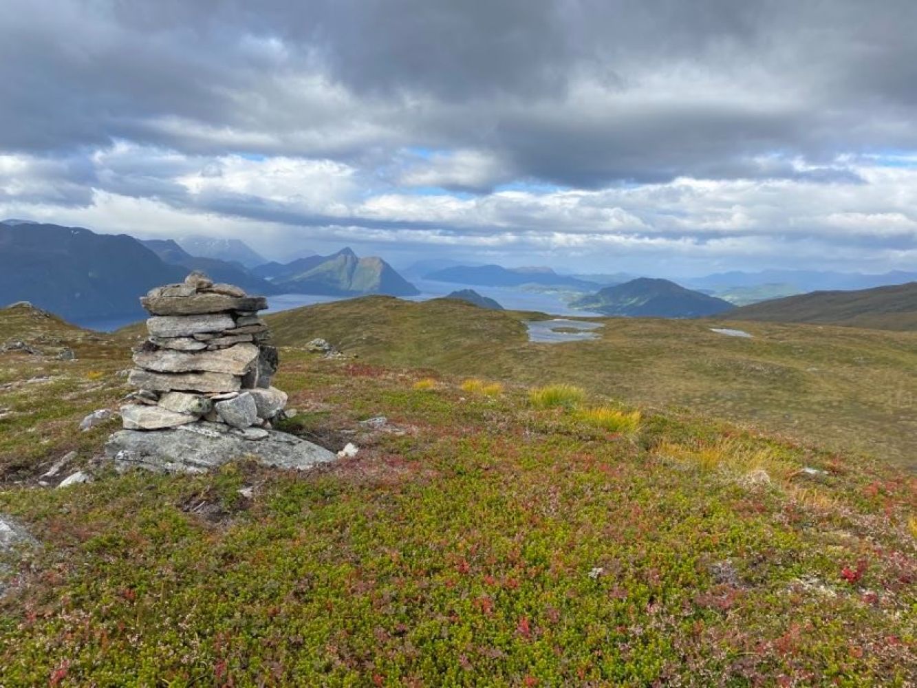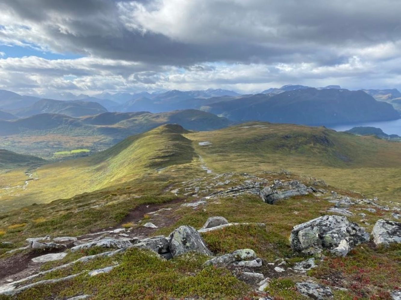 Sjølve toppen er flat og fin og har flott utsikt i alle retningar. Familevenleg tur.