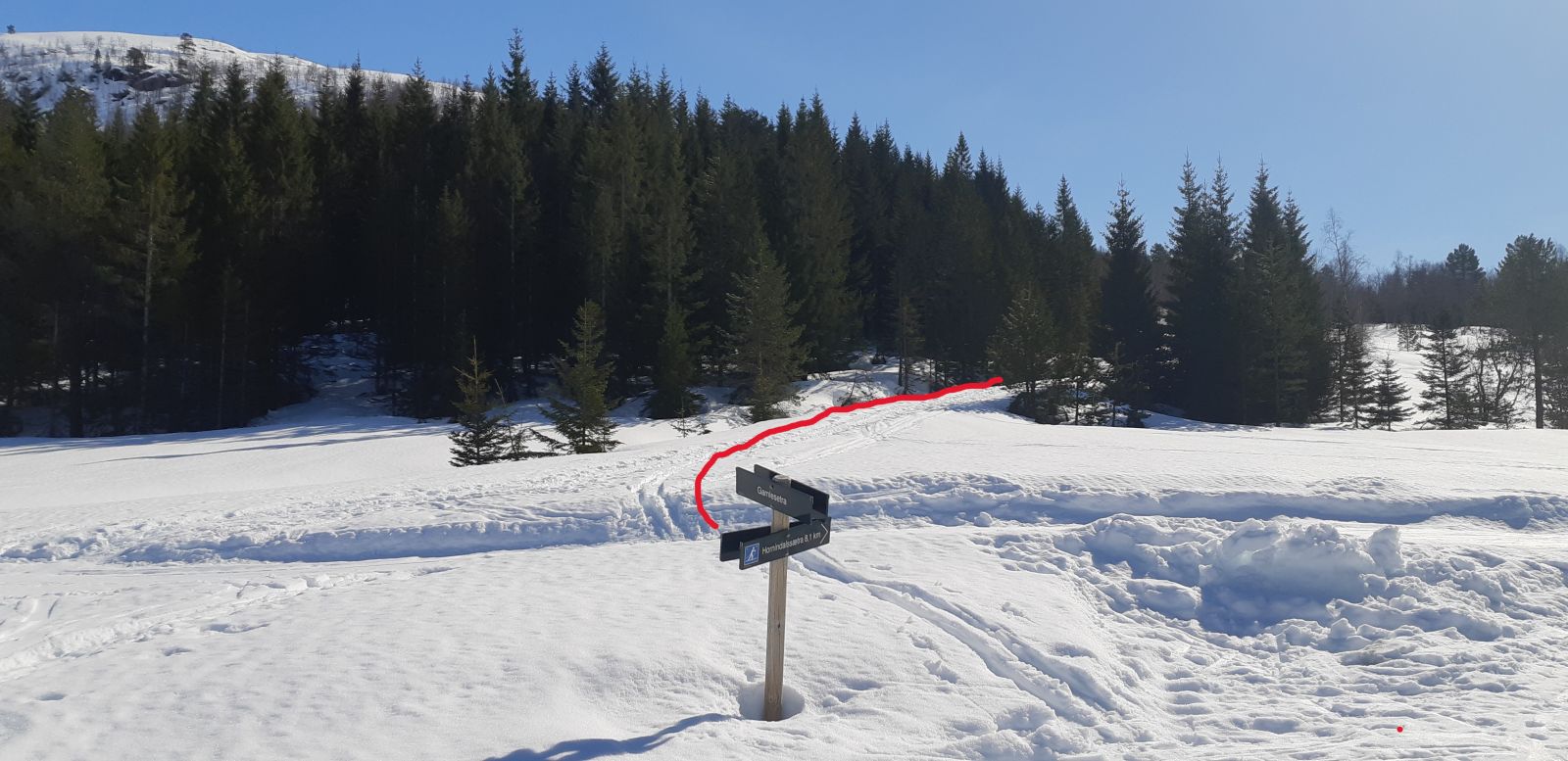 Frå P-plass følger du løypa vidare. I første løypedele er det skilta Gamlesætra. Her skal du skråe oppover til høgre i granskogen på ein skogsveg. Følg denne eit stykke, knapt 500 m (ev. før), og baut deg opp gjennom skogen. Du kan truleg følge i andre sine spor. Når du kjem ut av skogen, er det berre å finne din eigen veg mot toppen. Du ser ikkje toppen før du er på ca. 1000 høgdemeter. Då skal du nokre få høgdemeter ned før du legg i veg på siste sida til topps.