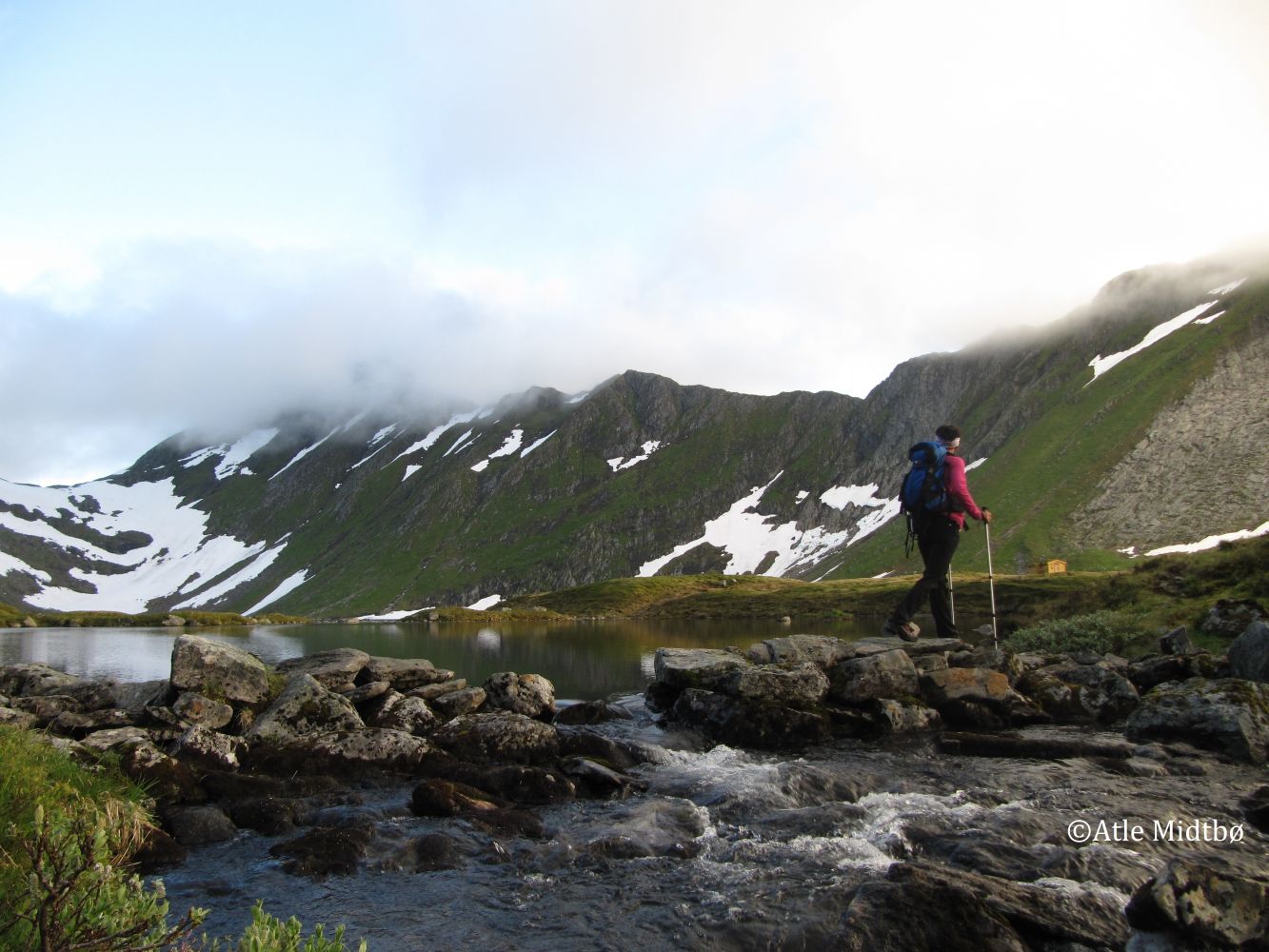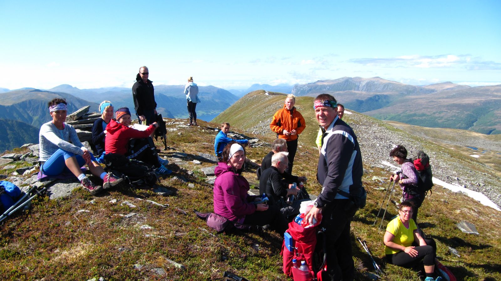 Ved Olavskjelda ser du oppover lyngrabbane som strekker seg oppover Sandfjellet. Frå Olavskjelda er det ikkje merka fordi herfrå er rutevalet ditt. Det er berre å velje ein lyngrabb og gå den rett opp dei 300 høgdemeterane til toppen.