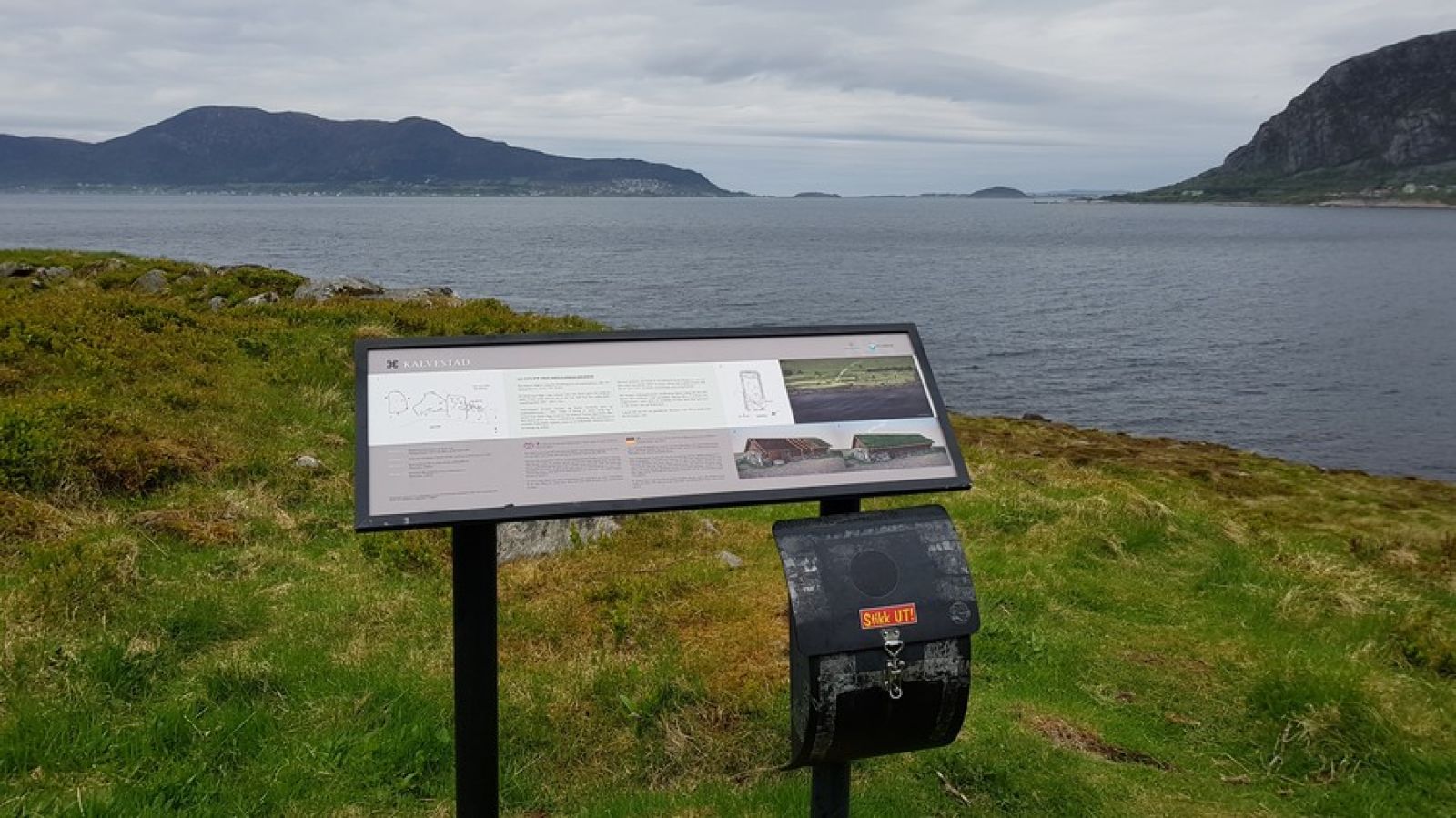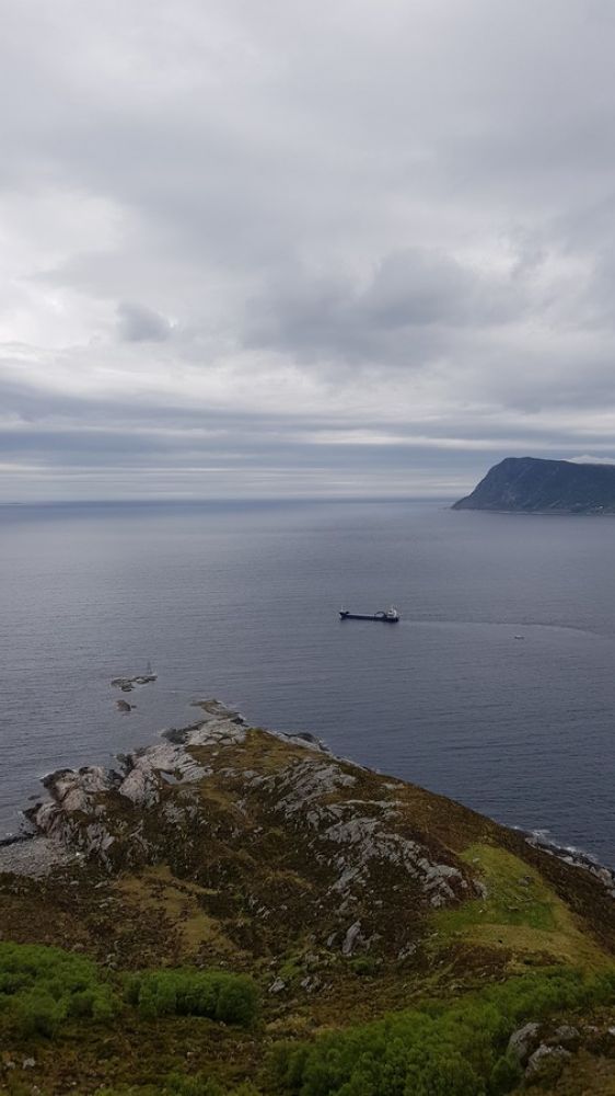 Praktfullt utsyn mot Hessa, Godøya og utover havet (Breisundet). Sjå spora etter middelalderbustader og gamle busetjingar. Eltraneset