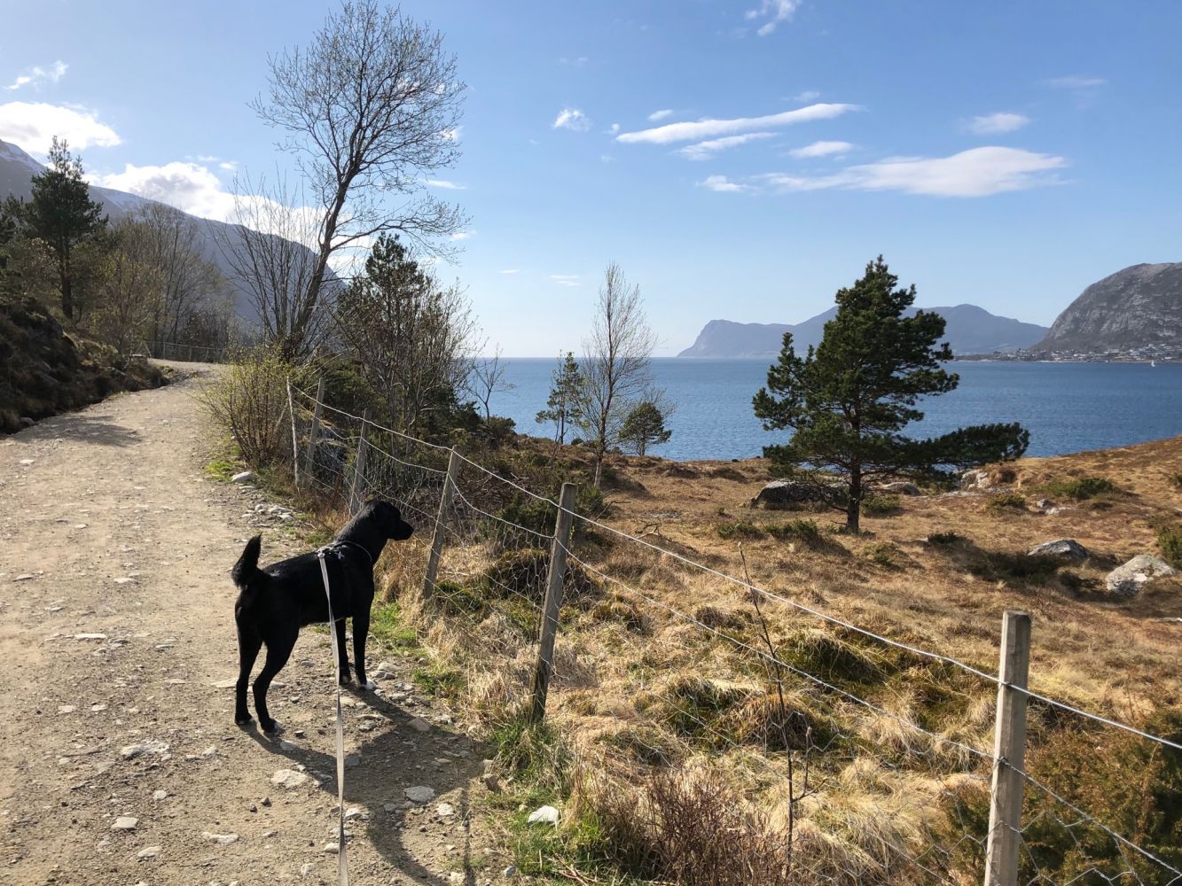 En relativt kort og enkel tur på grusveg. Fin utsikt utover Breisundet/ og mot Hessa.