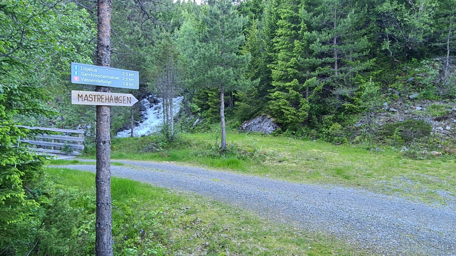 Ta av Rv651 i Søre Bjørkedal og køyr Sagelvsvegen 350 m rett vestover. I krysset ved brua startar Laurdalsvegen; denne grusvegen følger du oppover bakkane ca 2,0km. Når du kjem til ei trebru, kan du parkere før eller etter brua. God plass på begge sider av brua. Før brua står det grøne turskilt mot Sandviksdalen, LisjeTua og Vassendefjellet. Husk bompengar på Laurdalsvegen.