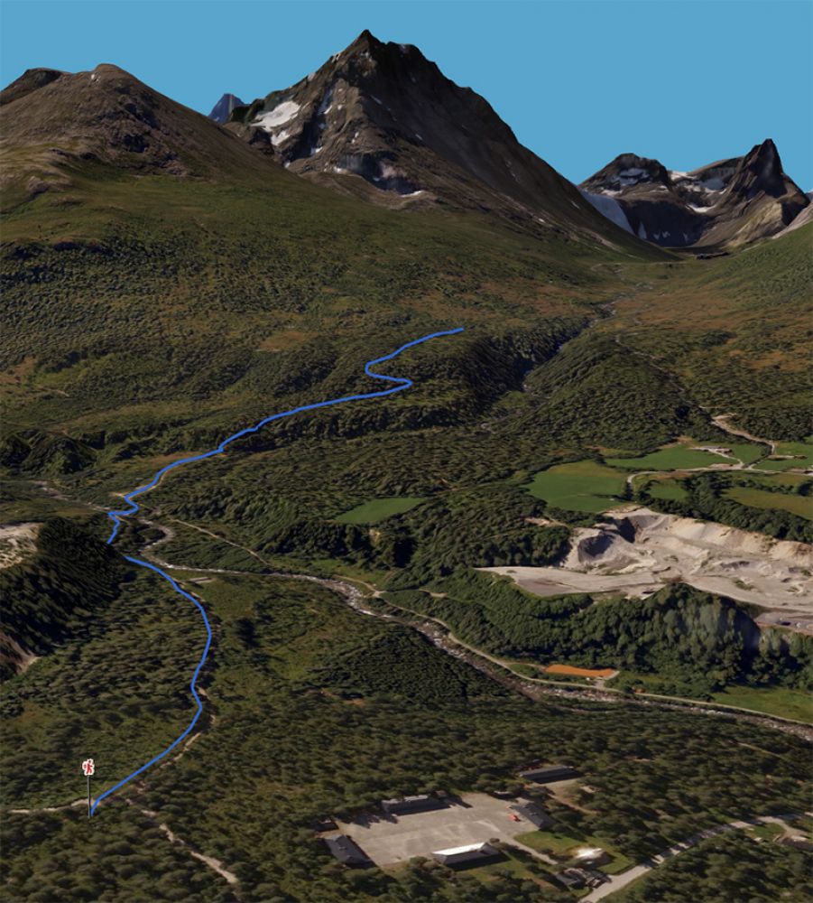 Kryss brua, etter ca 50 m. står en gapahuk. Like etter brua går traktorvei opp til høyre langs høyspentledningene. Følg skogsvei opp stigninga. Deretter en trivelig og god sti fram til målet