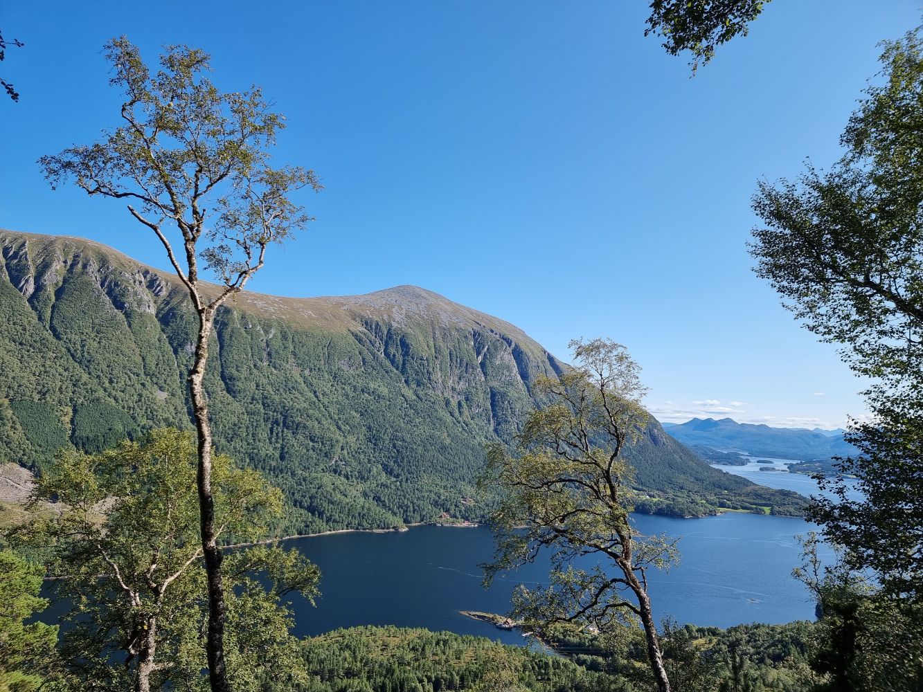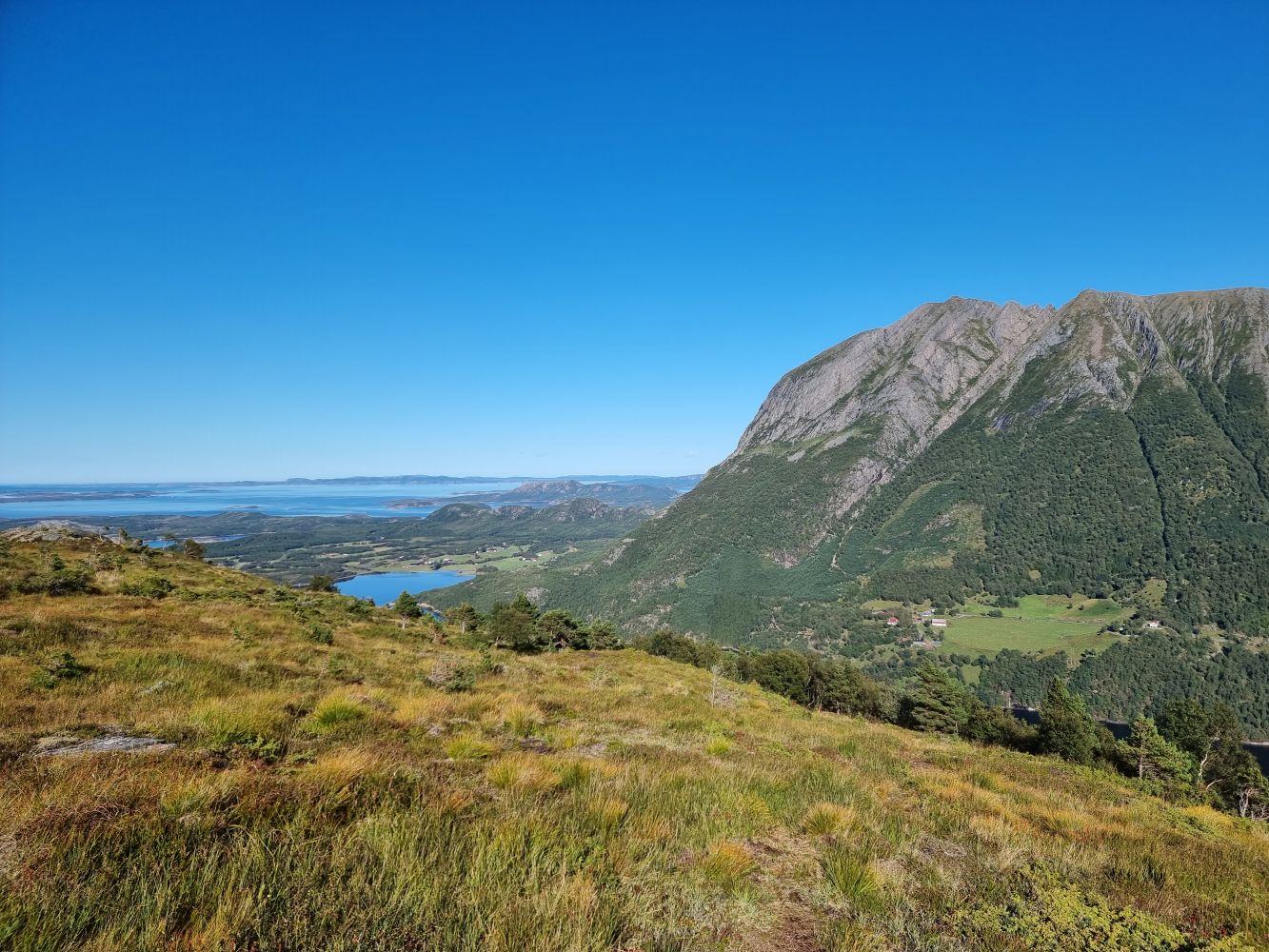Turen til Seteraksla har jevn stigning. Starter med å gå gjennom skogstereng til man kommer over tregrensen. Da får man nydelig utsikt over Soleimsundet.