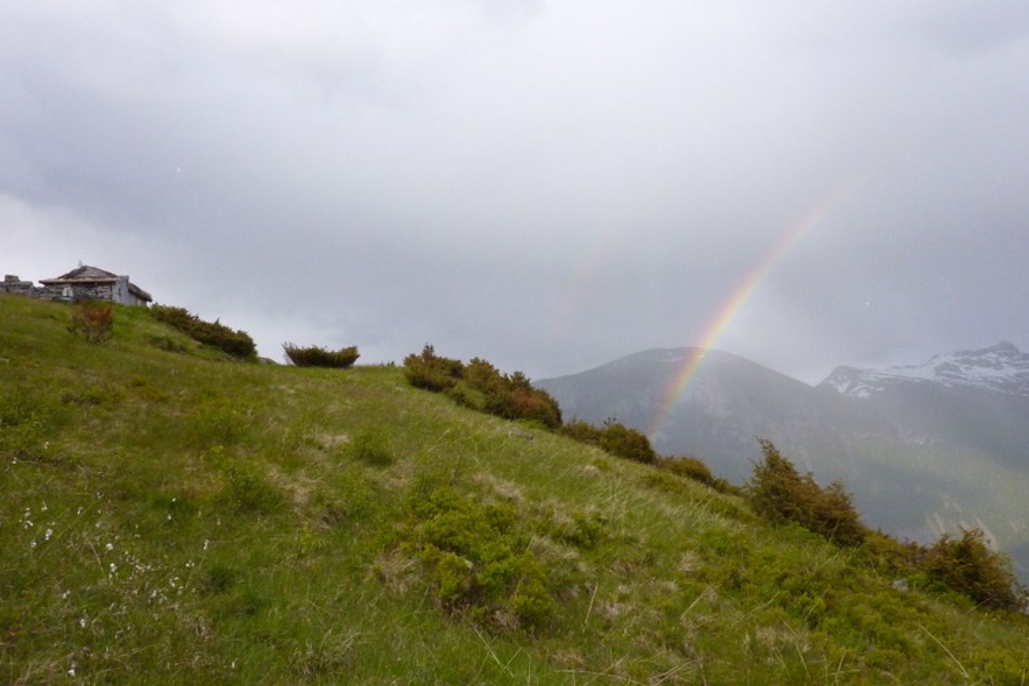 I enden av vegen går en sti rett ut til høyre (skiltet), og den går slakt utover til setra som ligger flott til på kanten mot Innfjorden.