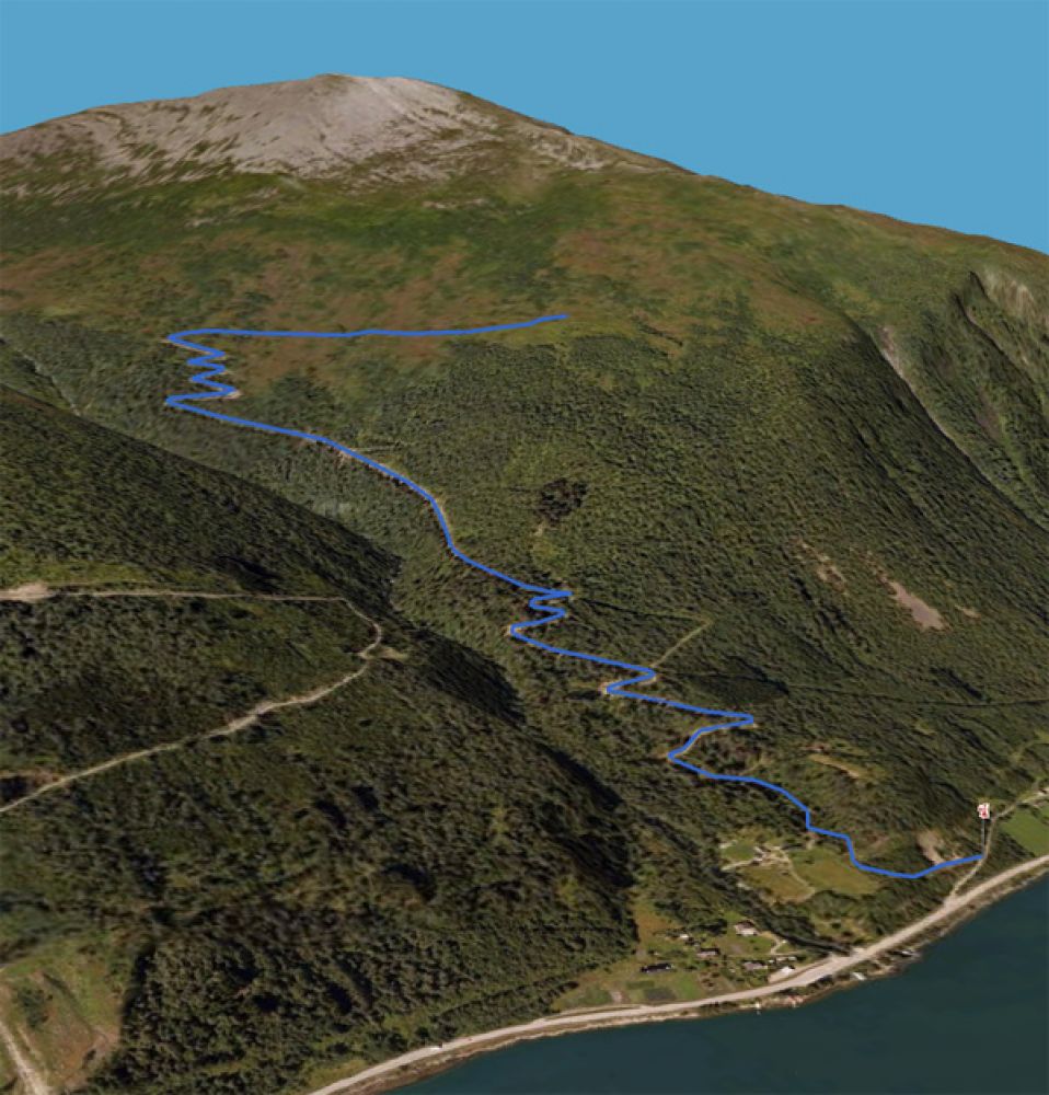 Vegen slynger seg oppover i i enkelte bratte partier, men blir noe slakere det siste stykket. Det er noen avstikkere, men turen følger hovedvegen hele vegen til endes.