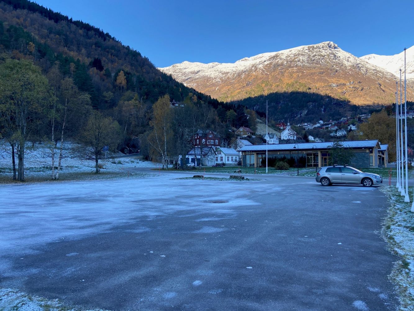 Parkering ved Hægstad Gård i Hellesylt sentrum.