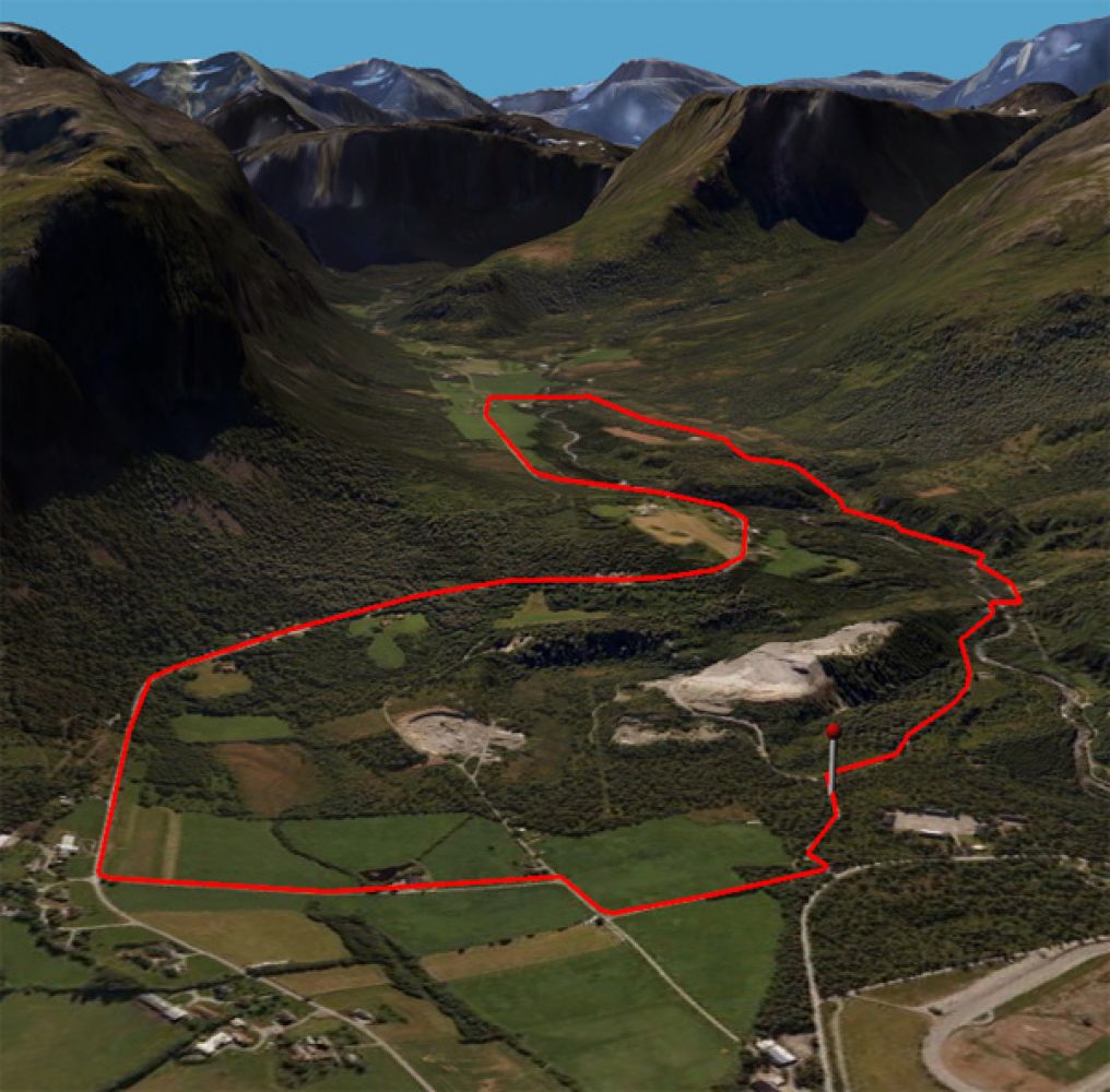 Følg traktovegen inn til en bakke ned til elva, der en kan krysse brua over til Røysan (her kan en også følge traktoveg videre innover, og krysse elva på Dale). Følg deretter bilvei tilbake til like før Moa, der en vei tar av ned til venstre. Følg denne tilbake til utgangspunktet (nede på flata ta først til høyre og så til venstre).