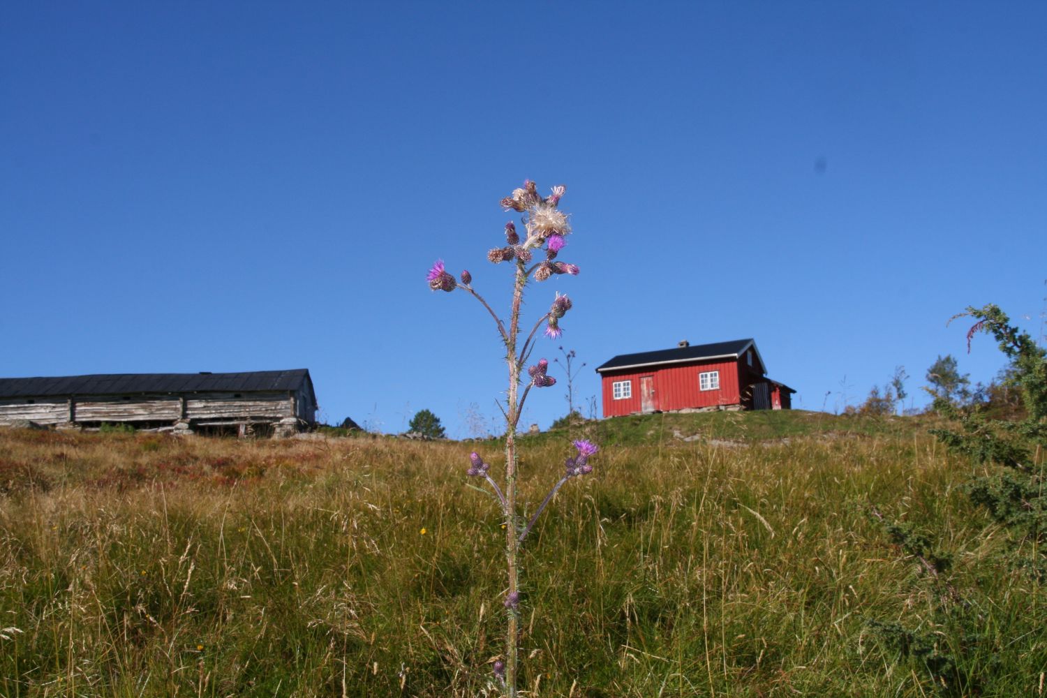 Halvveis på turen passeres Bjønnåssetra.Fra toppen er det god utsikt i alle retninger; i sør ser man de fleste toppene i Trollheimen og i nord kan man i klarvær se vindmøllene på Hitra.