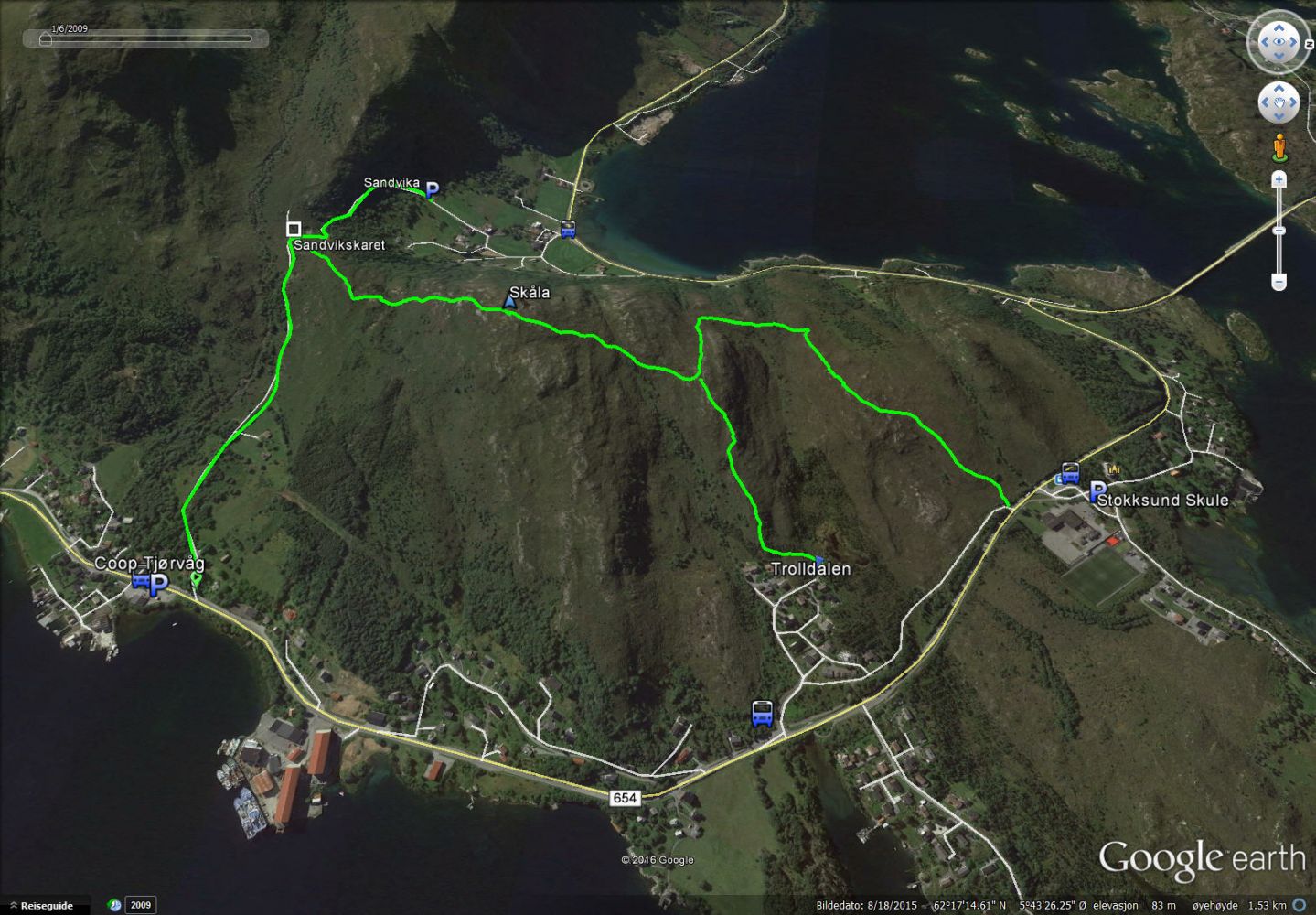 Rute 1: Frå Stokksund skule: 1,6 km, 170 høgdemeter