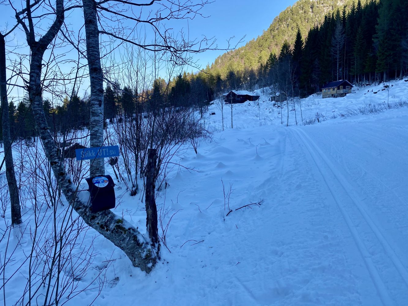Fin tur i lett terreng innover til Skålsetra. Løypa går på sommerbilvegen. Kassen henger til venstre for løypa inne på Skålsetra.
