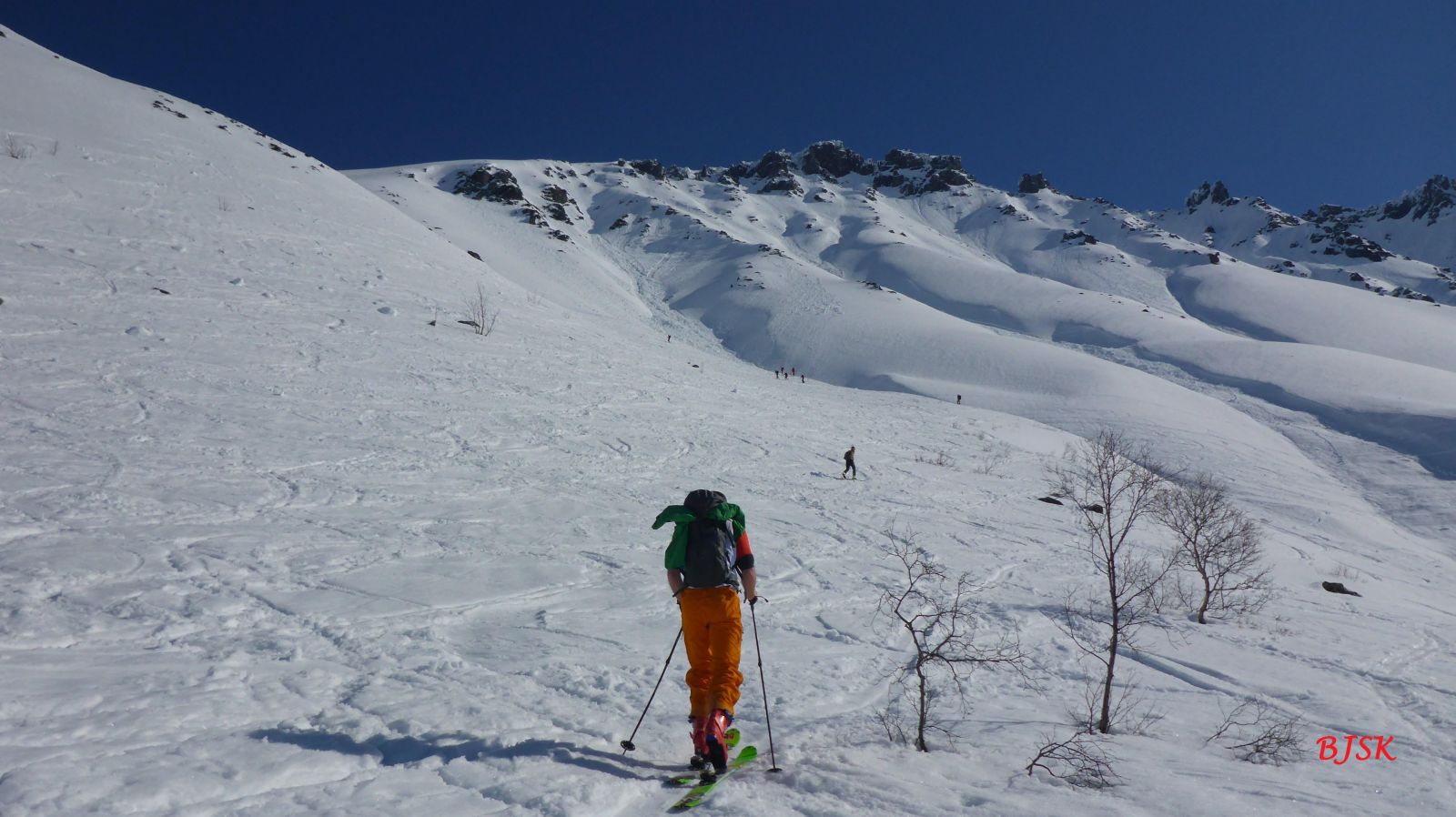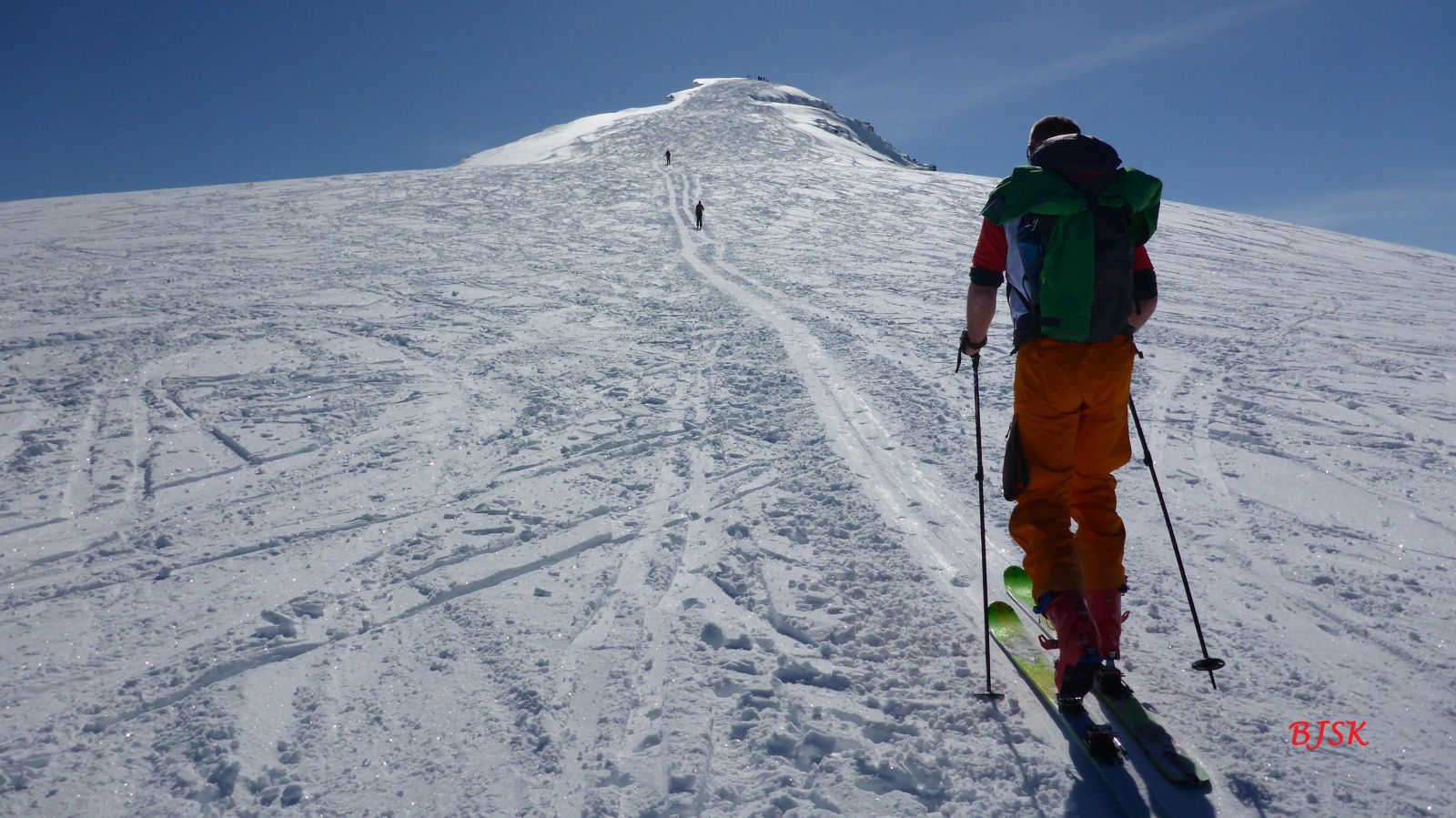 Dersom vegen til Kvistadsætra ikkje er brøyta må du gå den frå Kvistad, då vert turen ca 15 km og 1450 hm tur/retur. Når du er komen til parkeringsplassen på Kvistadsætra, går du vidare langs sætrevegen i søraustleg retning ca 400 m. Ta så til venstre og gå i nordaustleg retning, opp gjennom skogen og opp den bratte bakken på sørsida av Blåhornet. Sikt deg inn på dalen mellom Blåhornet og Skårasalen, og gå dalen nordover nesten til endes. Drei så mot aust og gå ryggen i søraustleg retning opp til toppen. Siste stykket opp mot toppen er smalt med store utoverhengande skavlar, så ver varsam. Her er det ca 650 hm rett ned på austsida av toppen. Turen nedigjen går same rute som opp, men det er også mogleg å renne Lisje Skåradalen ned til Hjørundfjorden og gå geiteråsa ved sjøen til ferjekaia på Skår. Ved dette alternativet må du bestille ferje eller skyssbåt på førehand, Skår har anløp berre på signal. http://www.frammr.no