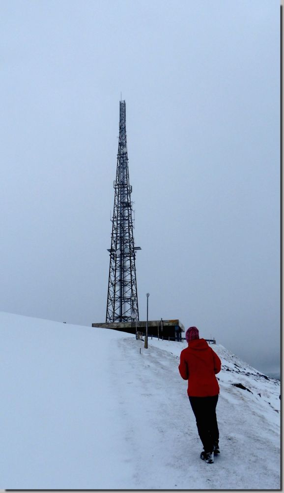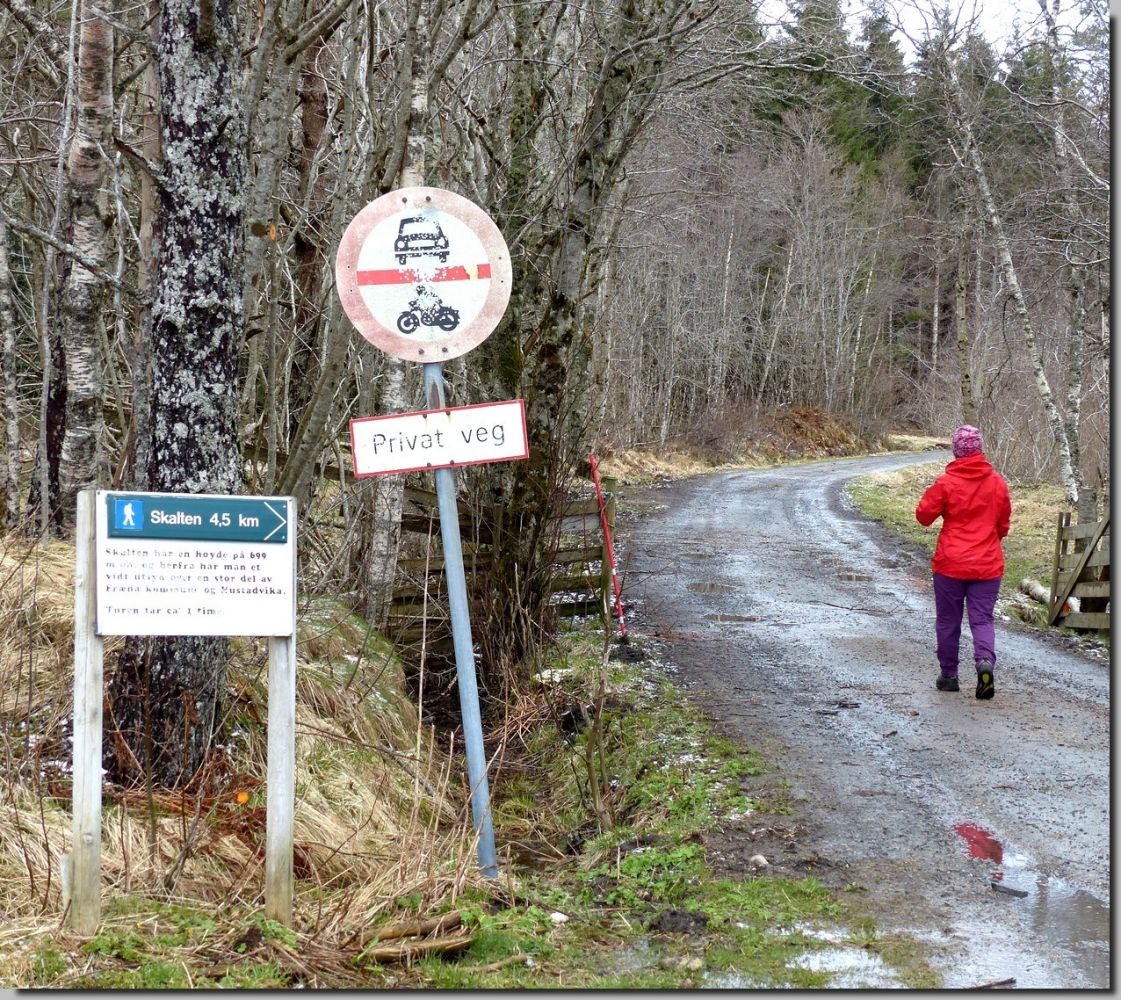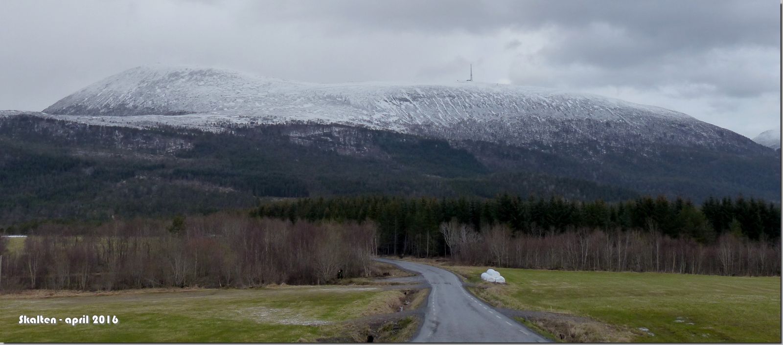 Turen går, som nevnt, langs en grusvei i svinger oppover. Vi laget denne turbeskrivelsen i slutten av april ('16) da det fortsatt var en del snø langs veien og på toppen. En grei tur for de fleste. Regner du en halvannen time opp og en time ned, kan du gå rolig :-) Det er fint å raste ved masta, der finner du alltids ly for vinden, om den er der. Flott skue får du også.Tips: Ta gjerne turen mot vest til selve Skalten. Der er det en varde og fin utsikt mot vest og nord i tillegg. Du står da like ved Skarsettinden - og vi kjenner flere som har klatret opp "veggen" der med utgangspunkt Skalten.