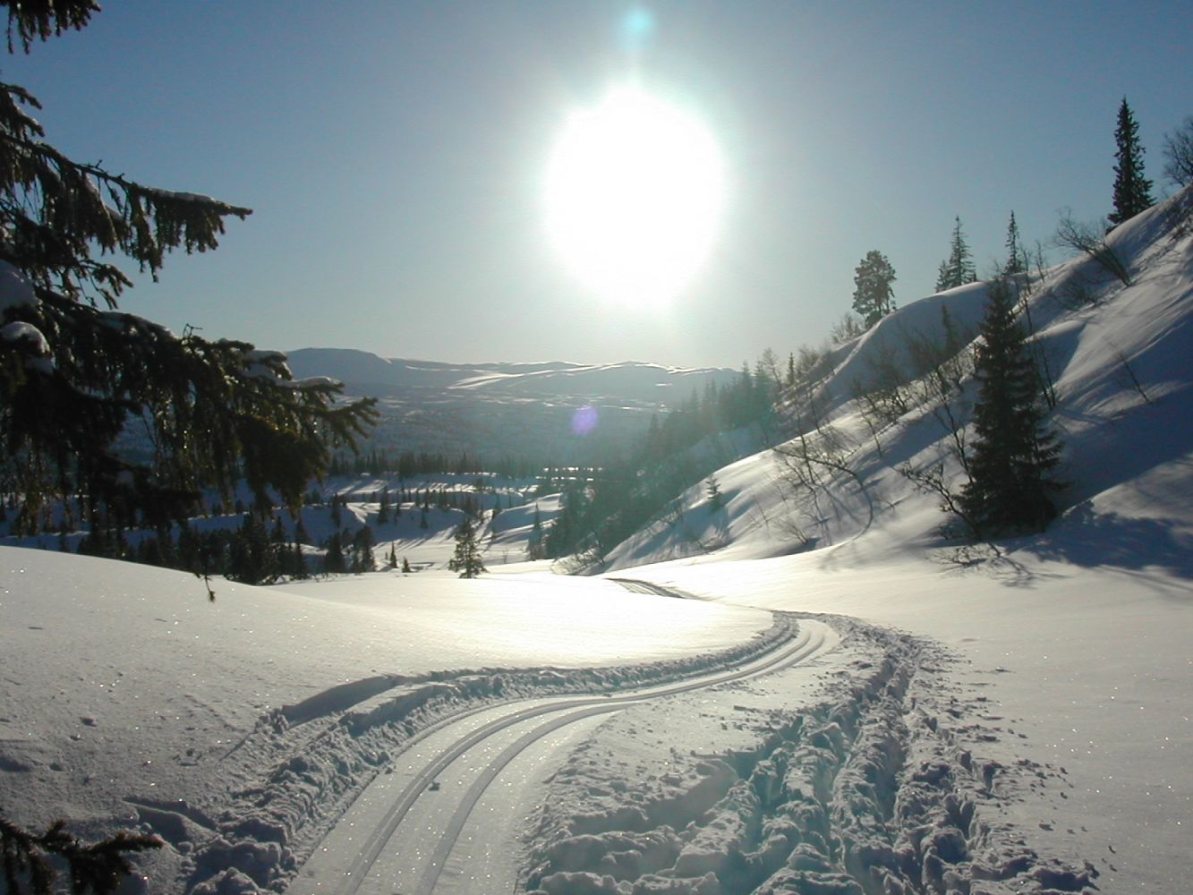 En mye brukt skitrase fra Rindal sentrum hvor det kjøres spor med snøskuter hele vinteren.