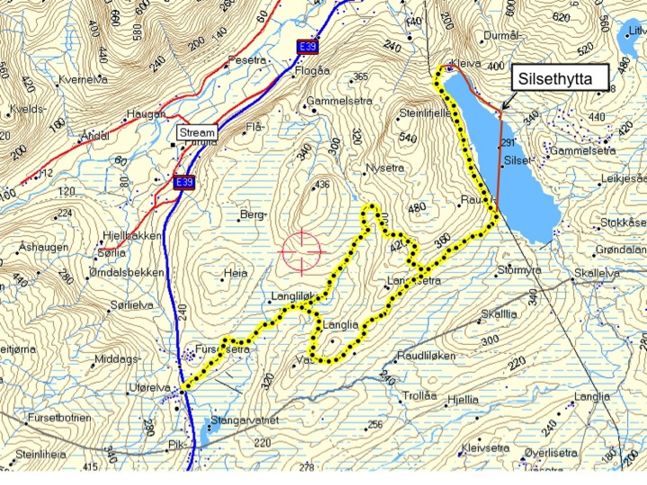 Turen starter ved parkeringsplassen på Fursetfjellet. Her krysser du vegen og følger den preparerte skiløypa på østsiden av E39. Den første delen av løypa går i lett terreng med lite stigning. Etter ca to kilometer deler løypa seg i to. Her kan du velge å gå til høyre opp en relativt bratt stigning opp Raudlia eller du kan ta løypa til venstre som har noe lengre gjevn stigning opp til Stokkåsen Begge løypene blir knyttet sammen ca 2,5 km lengre fremme og du kan derfor ta dette som en rundtur dersom du ikke ønsker å gå helt inn til silsethytta. Når du kommer frem til silsetvannet, ligger Silsethytta på andre siden av vannet. Her kan enten krysse vannet etter oppkjørte skuterspor dersom isen er trygg eller du kan ta til venster og følge skiløypen rundt vannet.