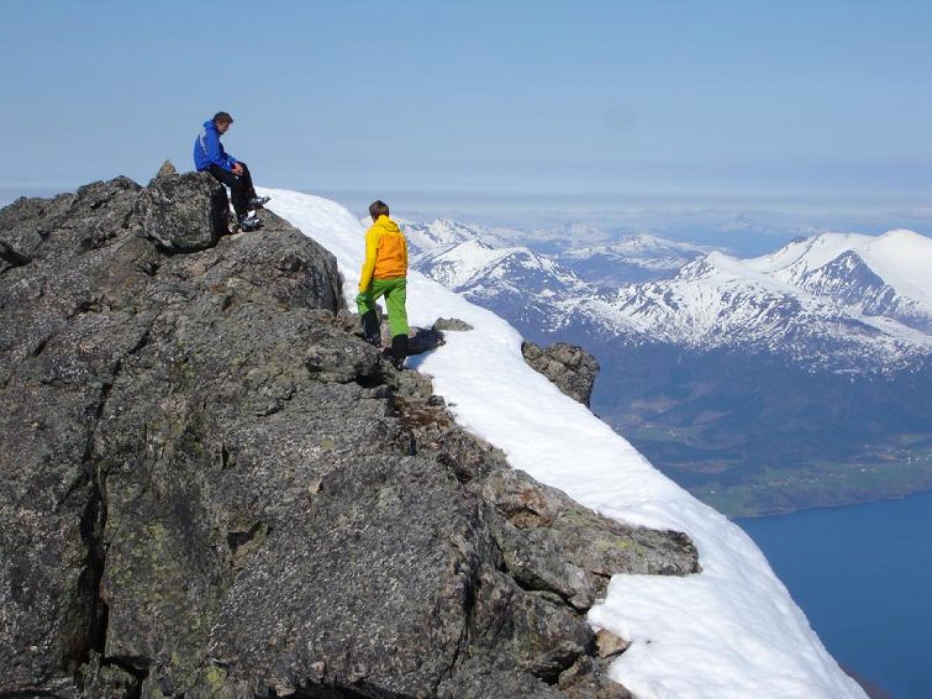 Ta opp den bratte sida fra skaret og følg ryggen videre oppover mot en hammer. Siste stykket før toppen bruker det å ligge ei ur, og det kan være greit å bære skia det siste stykket opp mot nord-ryggen (ca. 50 m å gå ved siden av hammeren).