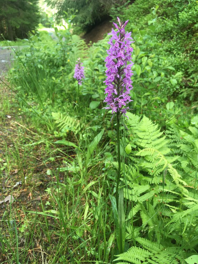 Følg god grusvegen opp gjennom bakkane i flott skogsområde til du kjem til eit kryss. Fortset rett fram. Her er det skilta til Skodjestølen. I området frå krysset og opp mot stølen kan du i månadskiftet juni/juli finne både Skogmarihand, Flekkmarihand og nattfiol som alle er flotte orkidéar.
