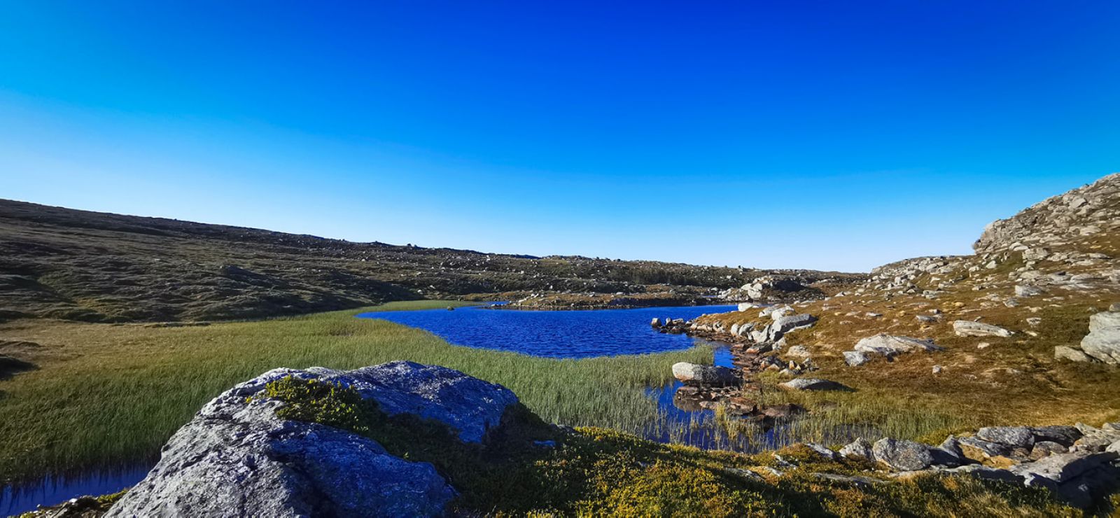 Fin tur i vakker natur. Begynner nede i Ytredalen, men etter eit par km, så går resten av turen i lav vegetasjon og med panoramautsikt mange veier. Kan blåse på toppane så ta gjerne med vindtett jakke i sekken. Supert å ta seg eit svalande bad i Grøthornvatnet. Du krysser elv, så fyll gjerne opp vassflaska.