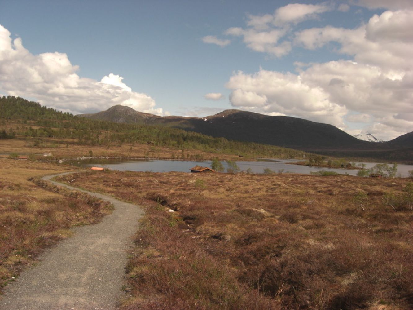 Like før en når skoggrensa og terrenget legger seg, går stien gjennom et par plantefelt. Følg stien videre, og til venstre for et stort jorde. Like før enden av jordet, ta av inn til venstre fram til Myrsetsetra. Herfra går stien på skrå mot høyre inn på hovedstien fram til Herjevatnet.
