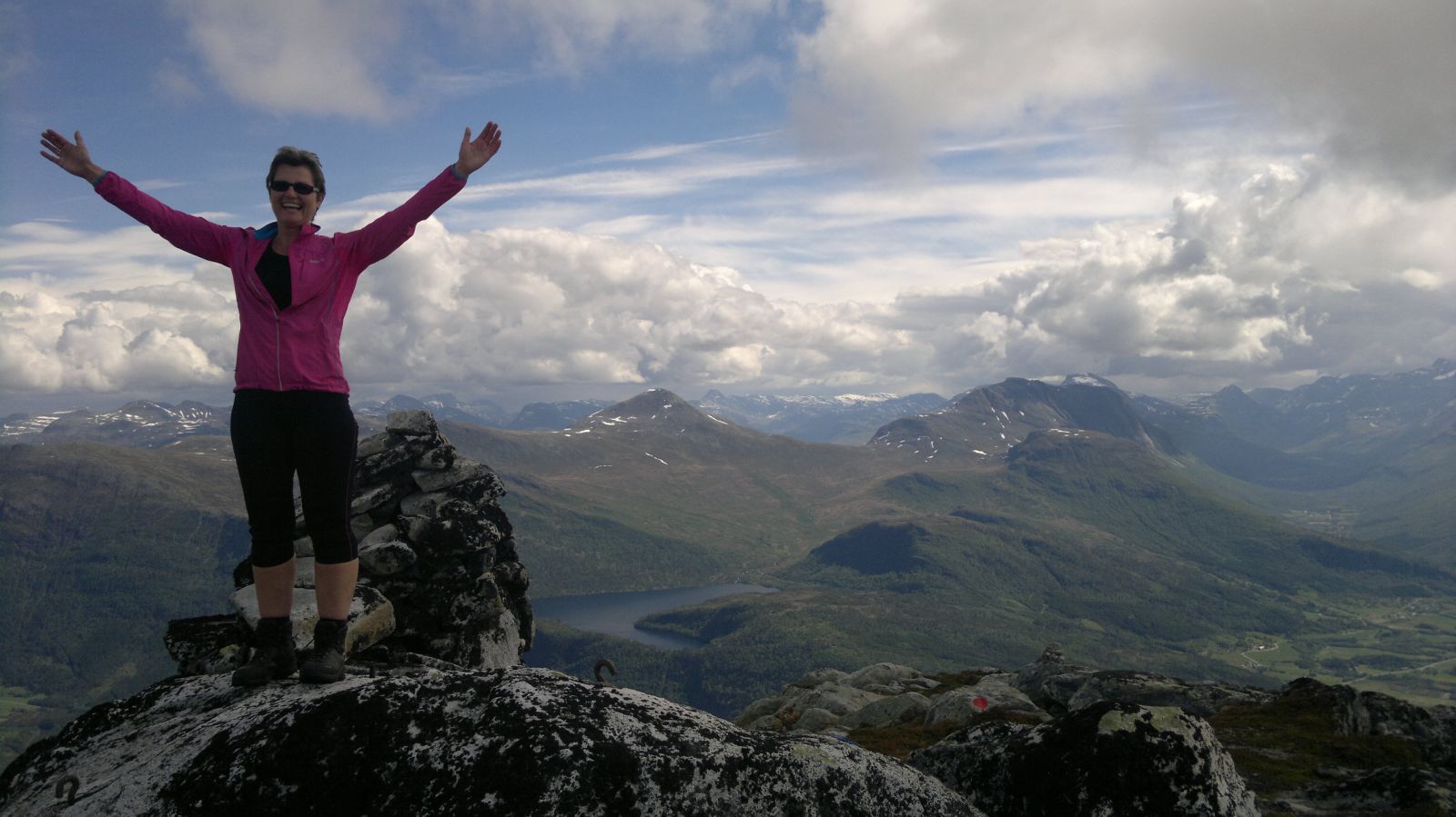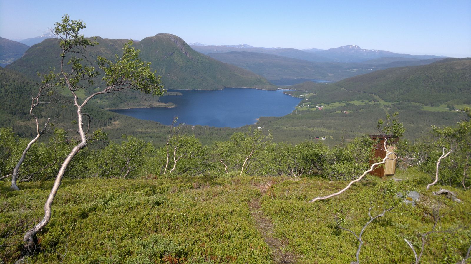 Etter å ha nådd toppen får du følelsen å være på tur i høyfjellet. Flott utsikt innover Innerdalen og utsikten mot Flånebba kan forveksles med terrenget med Jotunheimen. Varde og postkasse på toppen av Smisetnebbå 1175 moh.