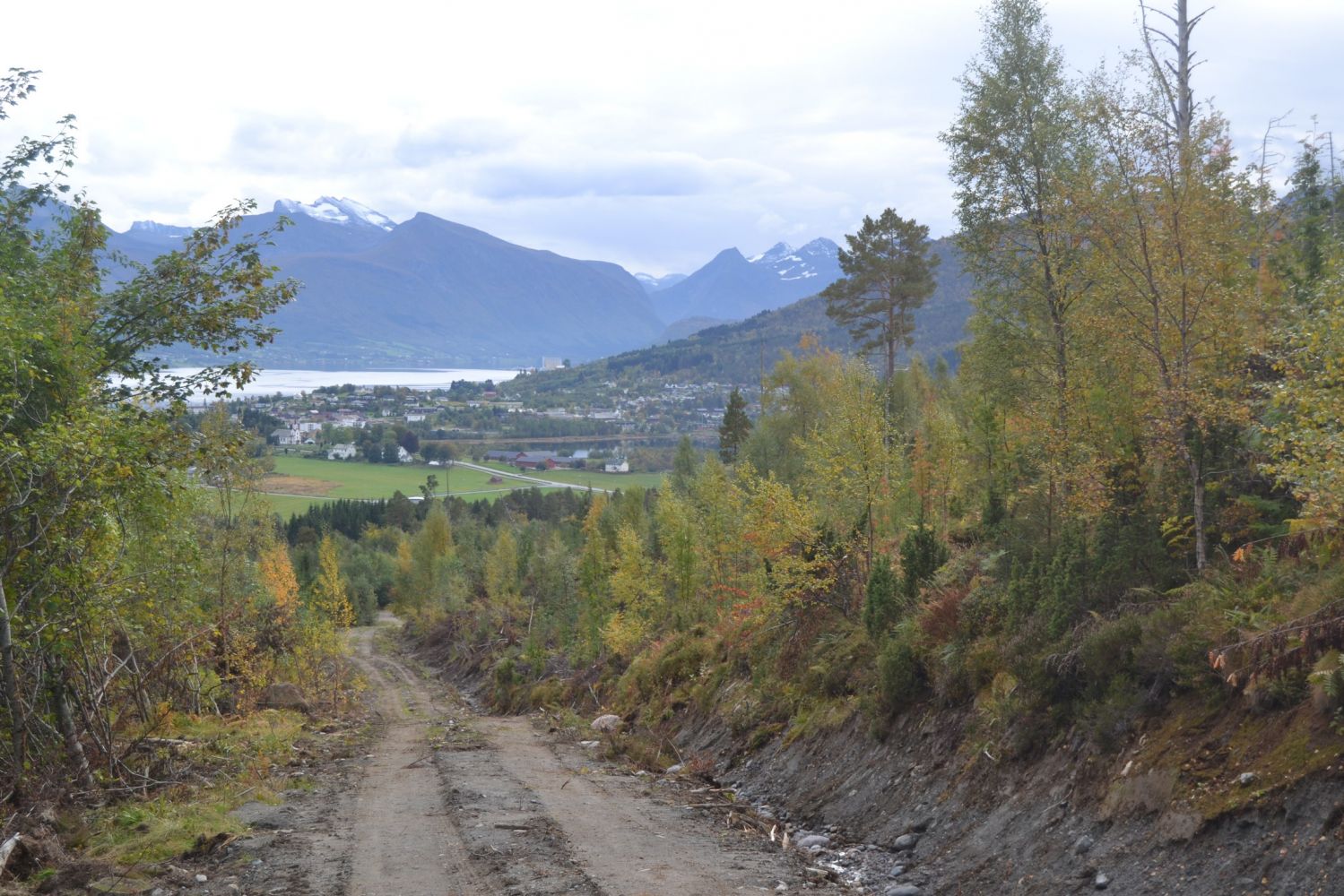 2,71 km VEIDELE; du skal rett fram, opp Langvassdalen på gjengrodd traktorvei
