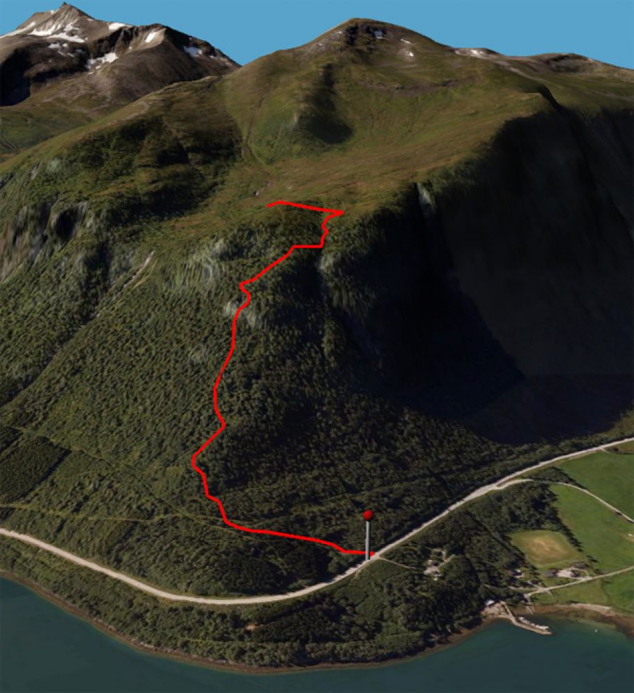 Ta av fra hovedvei rett vest for Søviksvingen (liten traktorvei opp i skogen) og parker etter ca. 40 m. Følg traktorvei videre oppover til skilt som viser til høyre mot Søviksetra. Følg sti gjennom skogen til nytt skilt (SS).
