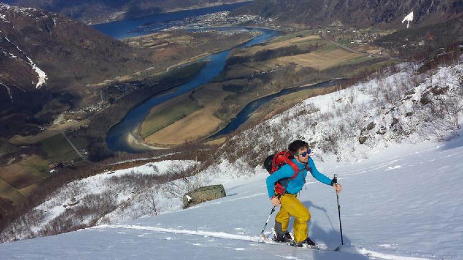 Flott utsikt mot Isterdalen, Åndalsnes og Trolltindene. Ned igjen følges samme rute.