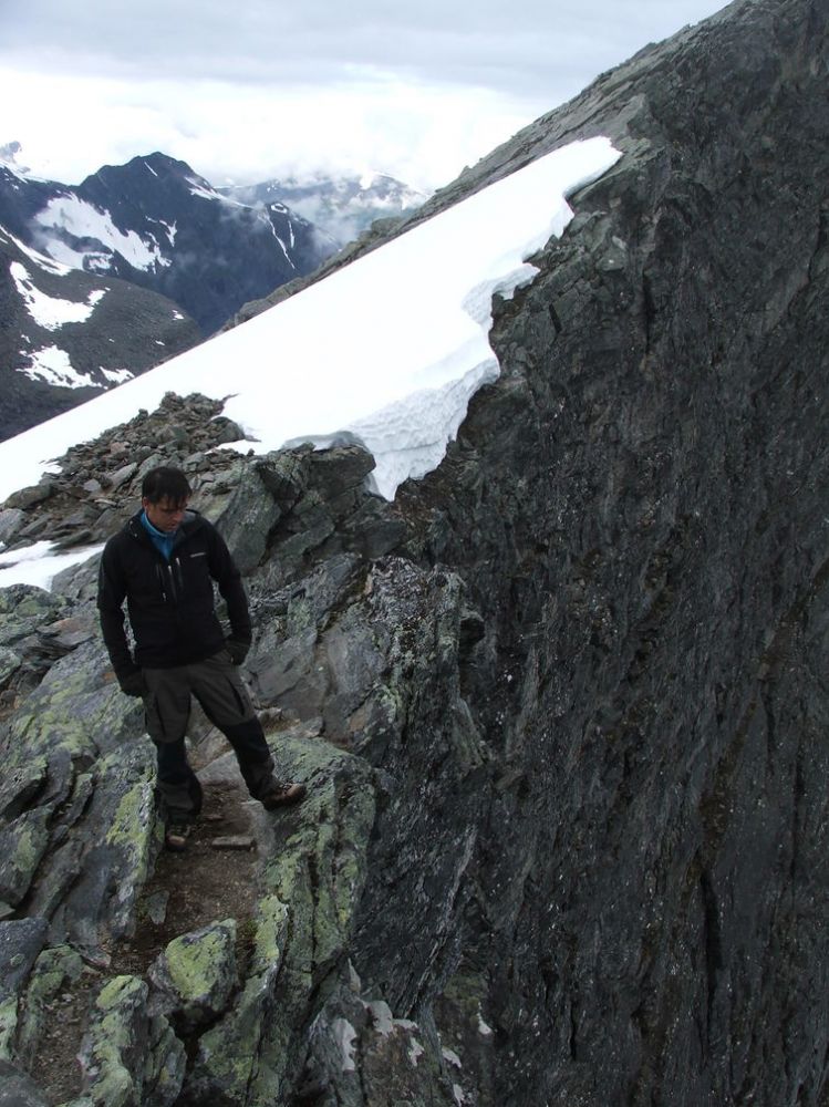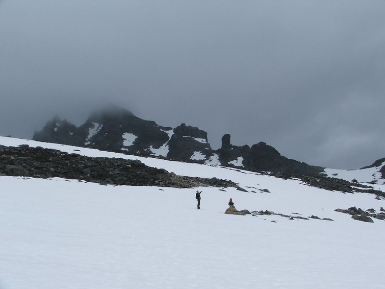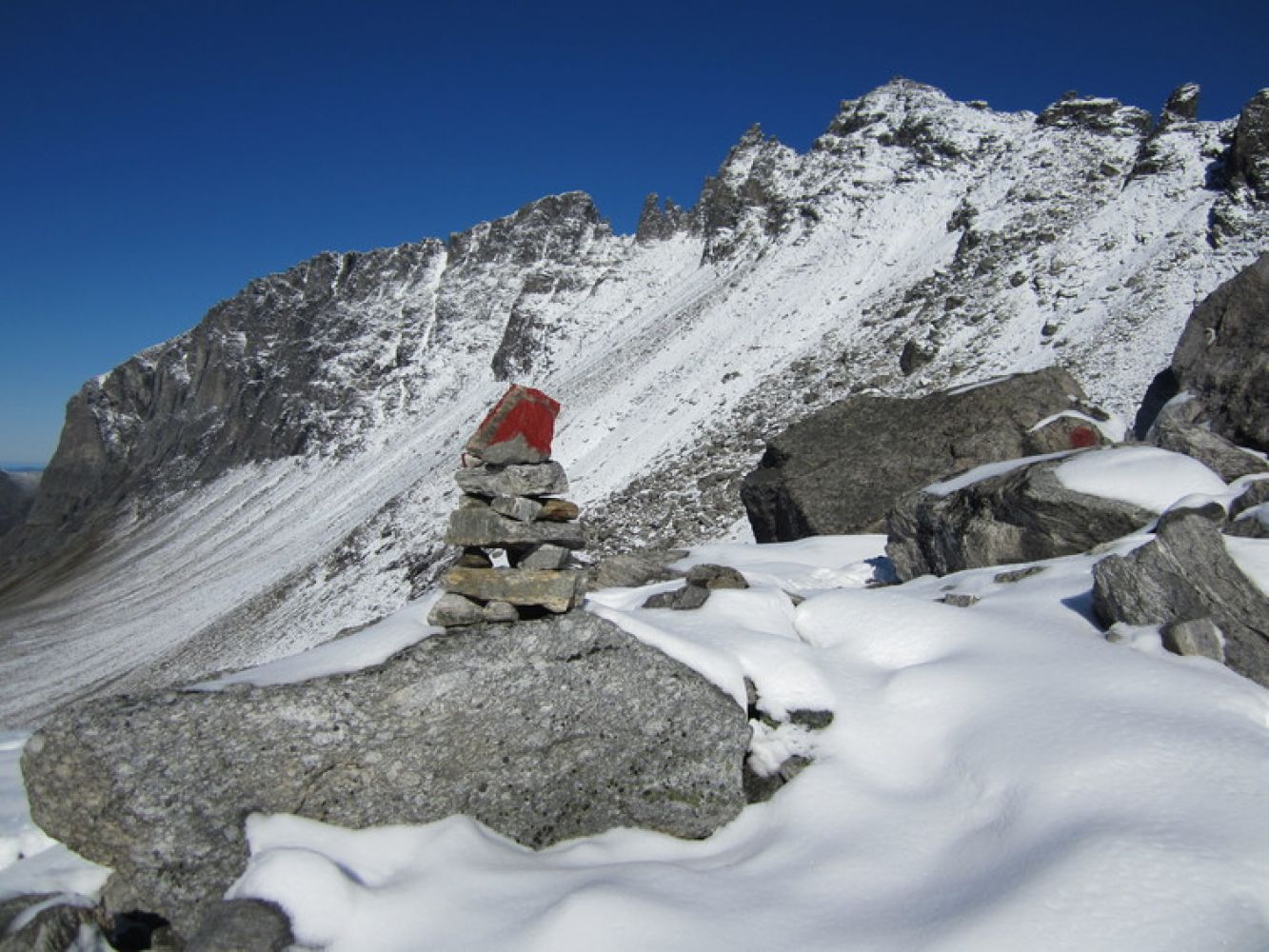 Fortsett oppover ryggen mot Semletind og opp i skaret (laveste punktet) mellom Semletind og Stabben.