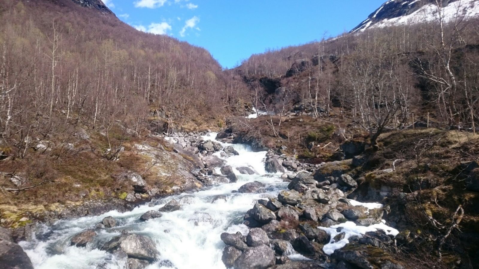 Følg skilting. Fin, oppmura rås gjennom skogen på høgre sida av elva oppover til Steindalsstølen. Dette er også ei DNT-rute. Under krigen fekk folket på Grønningsæter tilskot frå staten til å byggje setervegen. Vegen var bratt og svingete og det var eit storarbeid med handboring og sprenging og bygging av bru.