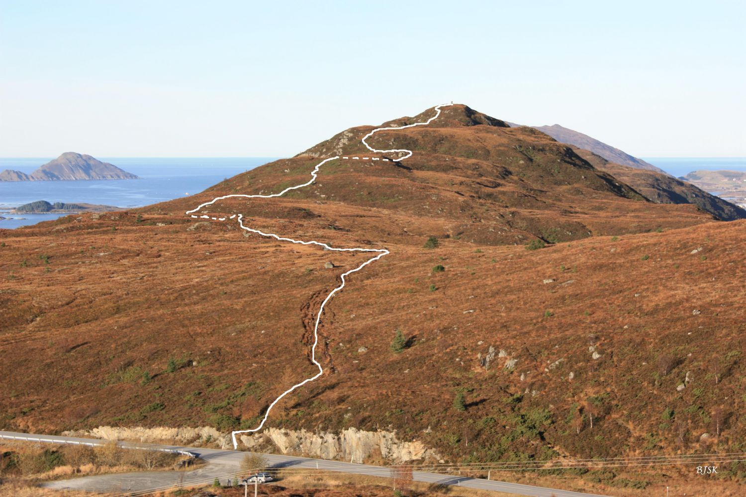 Råsa byrjar på vestsida av vegen på høgste punktet på Drageskaret, går så vestover, først over nokre myrar, råsa fylgjer så ryggen utover til toppen. God rås, kan vere litt vått over myrane ved regnver.