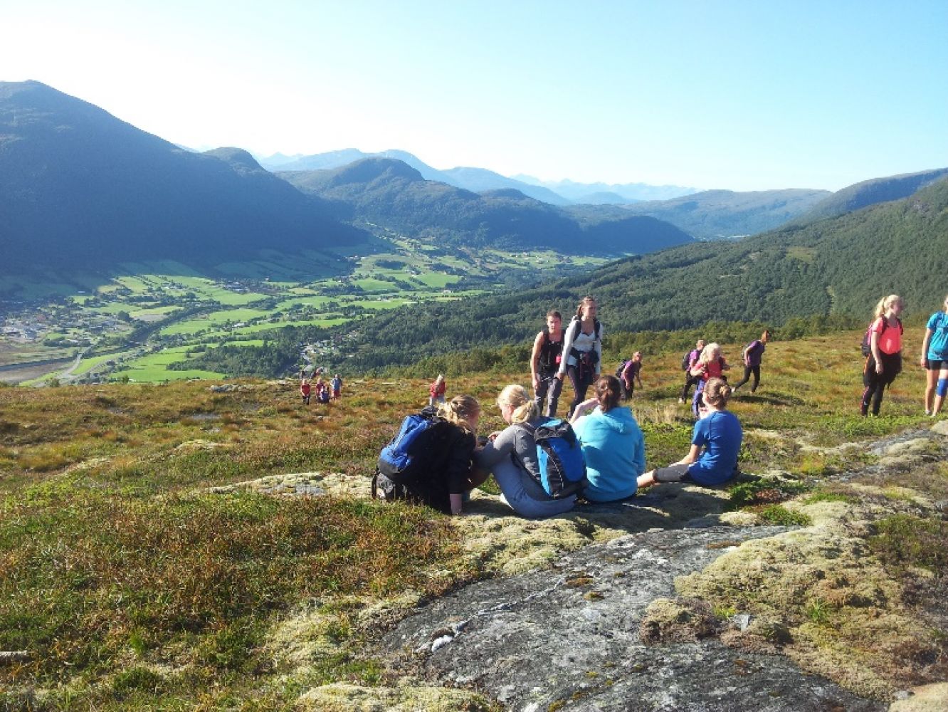 Turbeskrivelse: Fortsett på skogsbilveien fra barnehagen (ca 500 m) til en ganske stor lunneplass, sving til venstre på traktorvegen som begynner der. Følg traktorvegen opp lia til enden. Ta til høyre og følg merkebånd på litt utydelig, men merket sti gjennom skogen til over tregrensa. Fortsett rett fram opp mot Storfjellet til du er oppe på Heian (ganske flatt myrlendt område). Myra er ikke veldig våt, det er mulig å gå overalt. Den «tørreste» ruta over myra er nok langs bekken som kommer ned på høyre hånd. Hold mot venstre når stigningen i terrenget opp mot selve fjellet begynner, fortsett oppover. Etter at den siste «skogen» er passert, hold enda mer til venstre mot Astadskaret/Astadvatnet og fortsett oppover over flere små høyder til du nærmer deg en rygg som går mot høyre (ser ut som toppen av fjellet nedenfra!). Skrå mot høyre opp på denne ryggen og følg den omtrent til den er på det høyeste, sving ca 90 grader til venstre og opp på fjellplatået. Selve toppen (og Stikk ut-posten!) ligger ca 4-500 meter inne på flata ved et bittelite vann.