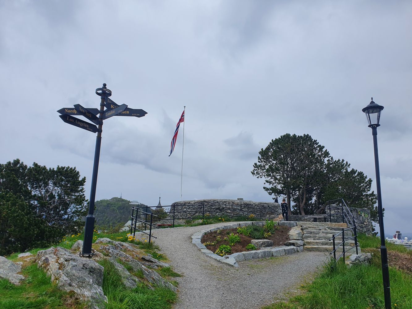 Frå parkeringa i enden av Kjøpmannsgata går ein på fortauet innover langs med nedre Strandgate, heilt til ein er på linje med Rema 1000 butikken. Her kryssar ein bilvegen på markert fotgjengarovergang. Etter å ha kryssa bilvegen går ein opp trappene i Ragnvald Jarls gate, som førar opp til Kirkegata. Her tar ein til høgre og kryssar vegen ved første fotgjengarovergang, og held fram i samme retning. Ta til venstre ved første gatehjørne og følg Gange Rolvs gate til den nordlege enden. Gå så innpå stien som drar opp grasbakken mot høgre. Ta så til venstre ved første veiskille. Følg denne grusvegen gjennom ein lang høgresvingen. Følg grusvegen til endes, og ein vil nå toppunktet til Storhaugen.