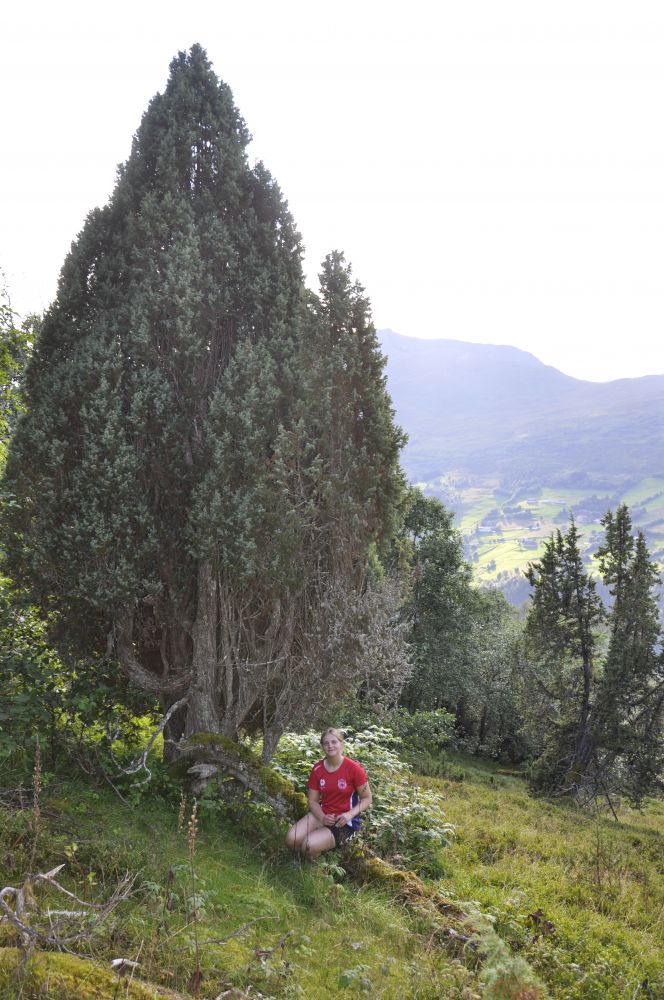 Hald fram vidare ut lia. Like etter setra, kryssar du ein bekk og held fram i lett kupert terreng. Legg merke til dei flotte søyle einerane du passerer. Desse er særmerkte for dette området og var ein viktig ressurs i tidlegare tider då folk laga gjerdestaurar av eine.