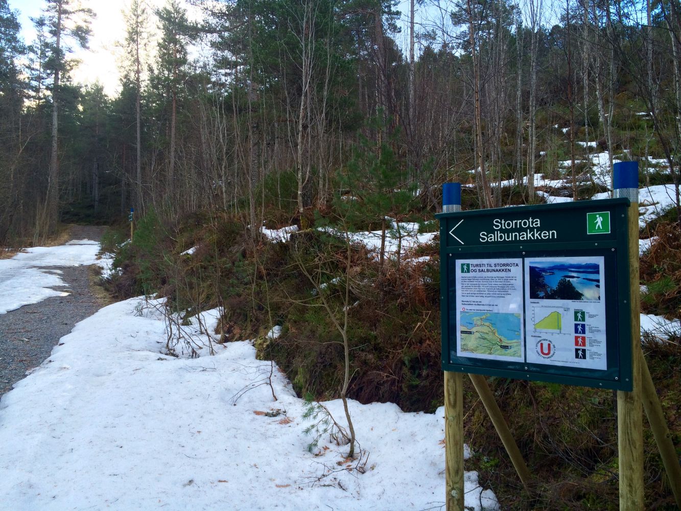 Turen starter ved starten på veien over til Brusdalen. Der er infotavle med informasjon om turen. Skilt med anvisning om sted og avstand er plassert i alle kryss langs ruten. Turen går stort sett i sin helhet på gruset vei. Når veien flater ut, er det skiltet en avstikker til Storrota. Fremme på Storrota er det en trimpost og rastebenk som Utvikbygda vel- og idrettsforening drifter. Retur samme vei, eller forleng turen med en tur til Salbunakken via Storegga (se egen turbeskrivelse).