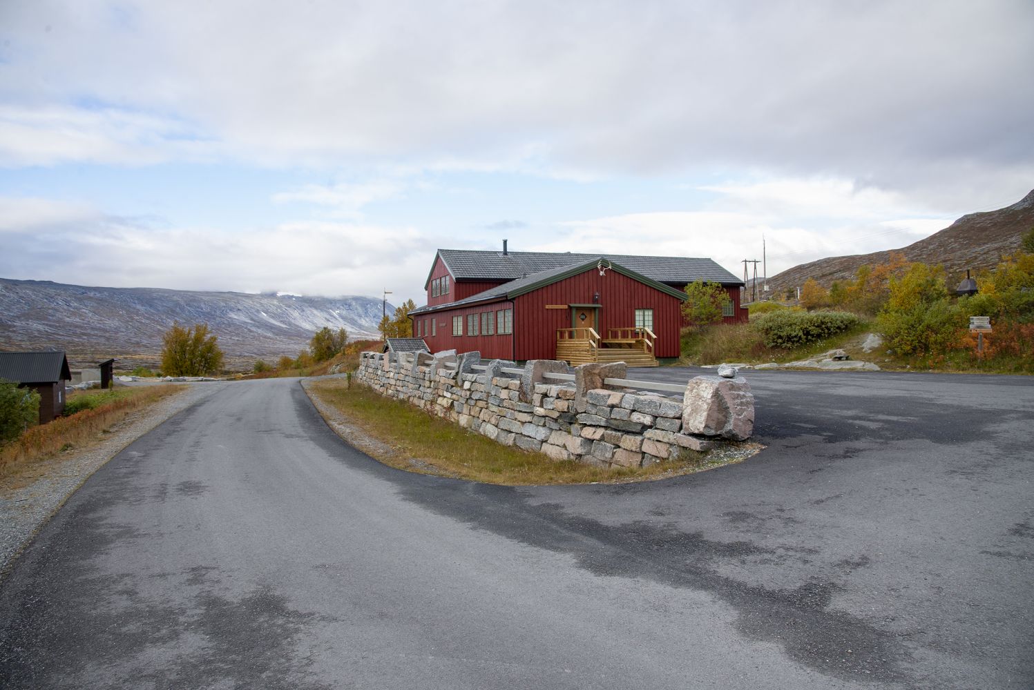 Storslågan er fjellet du ser rett bak Aursjøhytta, i nordleg retning.