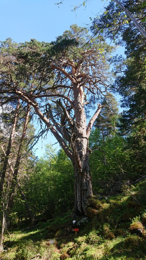 Oppe på snuplassen til skogsbilveien tar du til høyre og følger gamlestien til fossen et stykke, til du tar til venstre opp traktorveien mot Hølå. Der kommer du opp til ei kjempefuru som er turmålet. På begynnelsen av 1950-tallet prøvde Håkon T Utigard og Peder Utigard å felle tolla med sannsynligvis dynamitt. Tolla viste seg å være hard å få ned og mista bare en del av stamma. Svimerkene vises fremdeles. Utrolig nok er tolla fremdeles i live 70 år etterpå!
