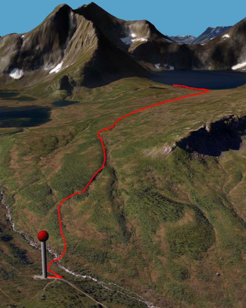 Parker ved parkeringsplass etter Skarsetra (bomvei). Følg traktorvei som går ned til elva like før parkeringsplassen, og kryss brua. Følg skilting mot Stortrollvatnet, tydelig sti og ta til høyre opp i første stikryss. Etter litt stigning er en ved Pe-Steinen (merket), stien følger tydelig sti ti venstre for elva innover og krysser elva der det legger seg. Følg sti og noen varder innover myrområdet. Stien når vatnet i nord-østre hjørnet og deretter forbi noen store steiner ned til vatnet. Etter naustet kryss elva og følg vatnet bortover til en fin rasteplass (ca. 200 m). Hvis en ønsker alternativ rute tilbake kan en følge sti ned til Måsvatnet (starter like etter steinene før vatnet) eller gå opp og via fortoppen til Kjøsen ned igjen. Kilde: