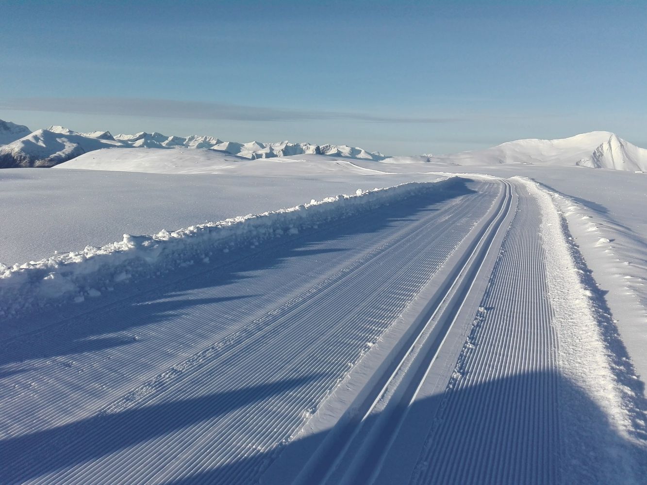 Frå parkeringsplassen, gå over brua mot Rauma skisenter. Ta trekket heilt til topps. Her starter skiløypa i motbakke. Følg ryggen og skispor heilt til toppen av Strandafjellplatået. Det kan være vindutsatt her og sporet kan lett blåse igjen. Det er også bratt ned på vesnte side så vær obs på det. Fra topp-platået er utsikten fantastisk mot Romsdalsfjella, fjorden og Åndalsnes. Løypa går så mot venstre. Finn stolpe med Stikk UT! Ski-koden og registrer deg. Forholdsvis flatt parti før det svinges mot venstre og nedkjøringa starter. Her er det forholdsvis bratt, men med brei løype er det greit å ploge og løypa går over i flatt parti. Om du vil gå innom Ingridsetra, hold litt mot høgre etter en har passert Breivikvatnet. Om du vil direkte på tilbaketuren, ta mot venstre ned Ljøsådalen. Her er det grei nedoverbakke heilt ned til Nordvikstølen. Fortsetter med kupert terreng med nedoverbakke mot slutten og ned mot Rauma skisenter. Her er det varmebu med servering og toalett når skitrekket er åpent. Sjå raumaskisenter.com for meir informasjon. Alternativ for å unngå skitrekket, gå innover Ljøsådalen, skiltet mot Ingridsetra og følg beskrivelsen motsatt veg. Anbefaler da å ta samme veg tilbake for å unngå veldig bratt nedfart.