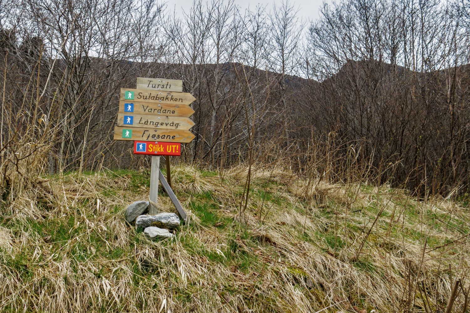 Følg kjerrevegen opp mot gardane på Sulebakkane. Like før du kjem til første garden står eit skilt med Turveg, følg denne. På første garden bur Nils Storås, kjent frå «Der ingen skulle tru….». Følg vegen vidare til venstre og neste gard, Sulebakkane. Etter denne garden går ein over på rås og denne kan vere våt og tidvis glatt. Ta difor på gode sko, med god såle. Følg god sti til du kjem til ei raud hytte, akkurat over tregrensa. Den mest brukte råsa vidare til Sulebakkhornet går rett til høgre for og bak hytta. Frå hytta går ein ganske bratt opp fjellsida og på toppen er fleire vardar. Registreringsbok er ved den største varden til venstre når du kjem opp.