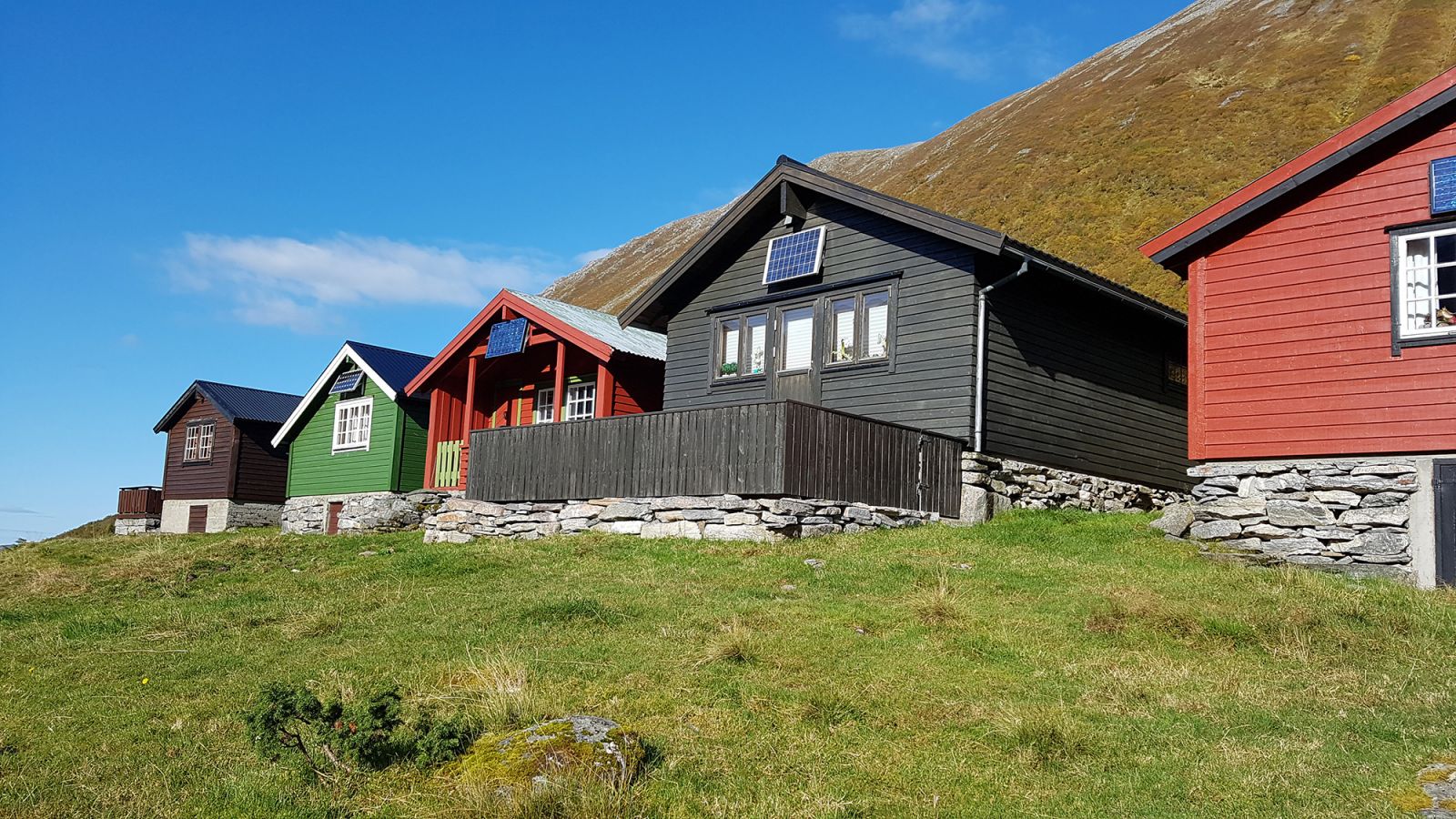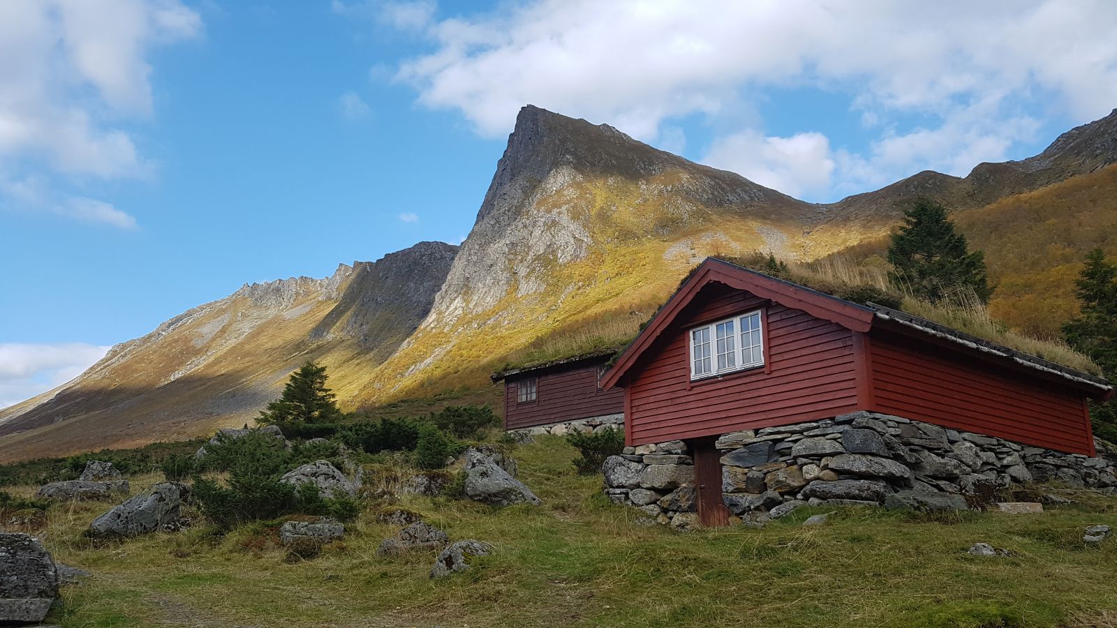 Etter drøye 3.4 kilometer passerer vi den flotte Myklebustsætra, som ligger flott til på nordsiden av veien, som en kontrast mot de ville Sunnmørsalpene!
