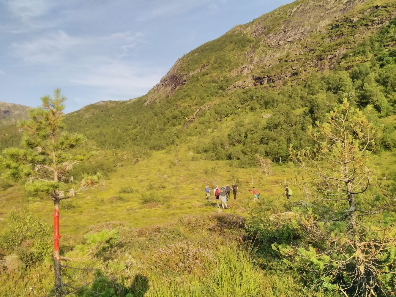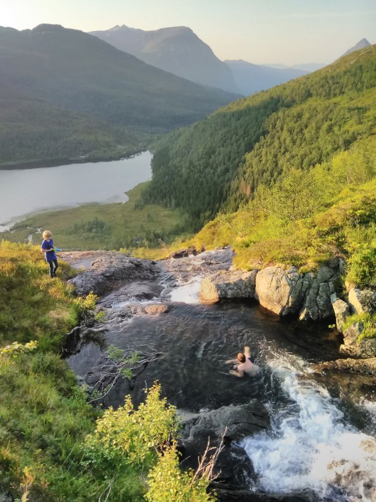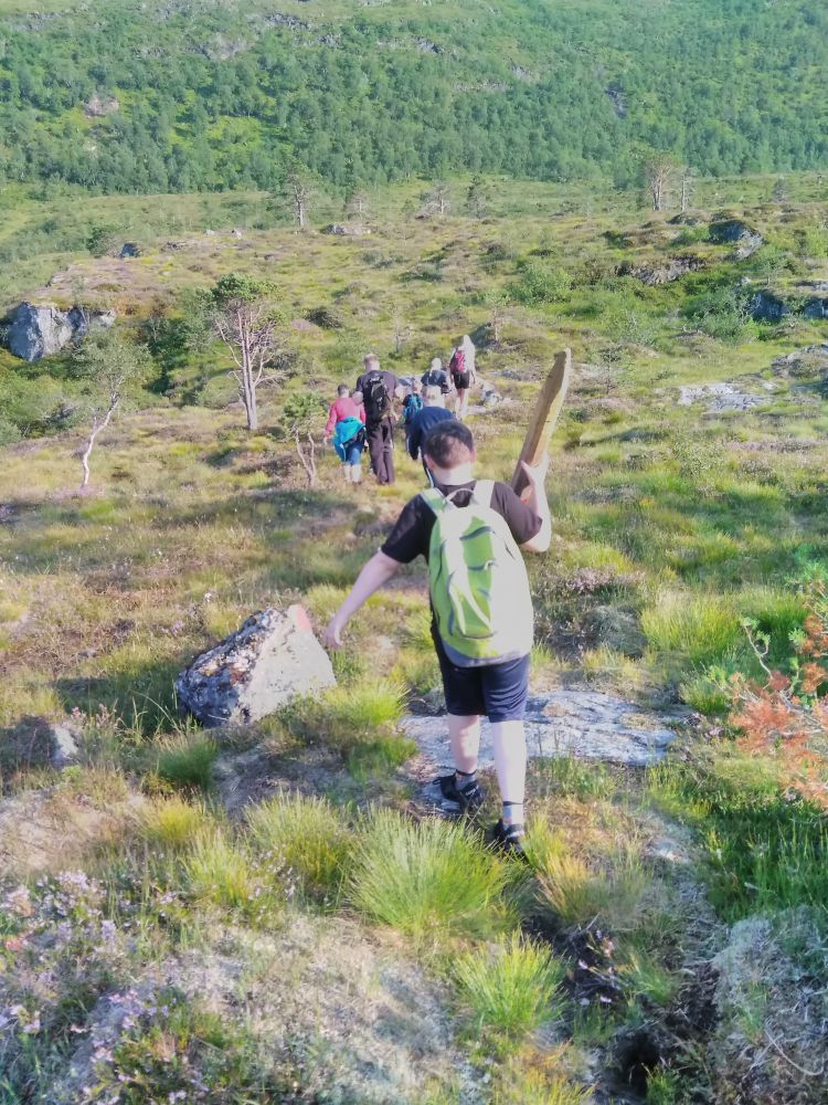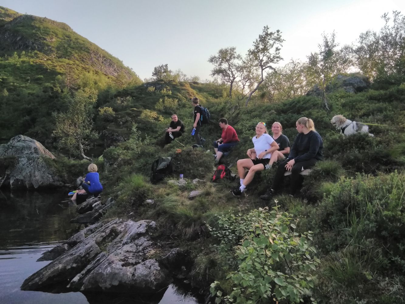 Fortset ein turen 250m forbi utløpet av vatnet, kjem ein til ein haug der det ligg fleire imponerande kampesteinar. Desse blokkene er førte hit av isbreen og er flotte å klatre på for store og små.