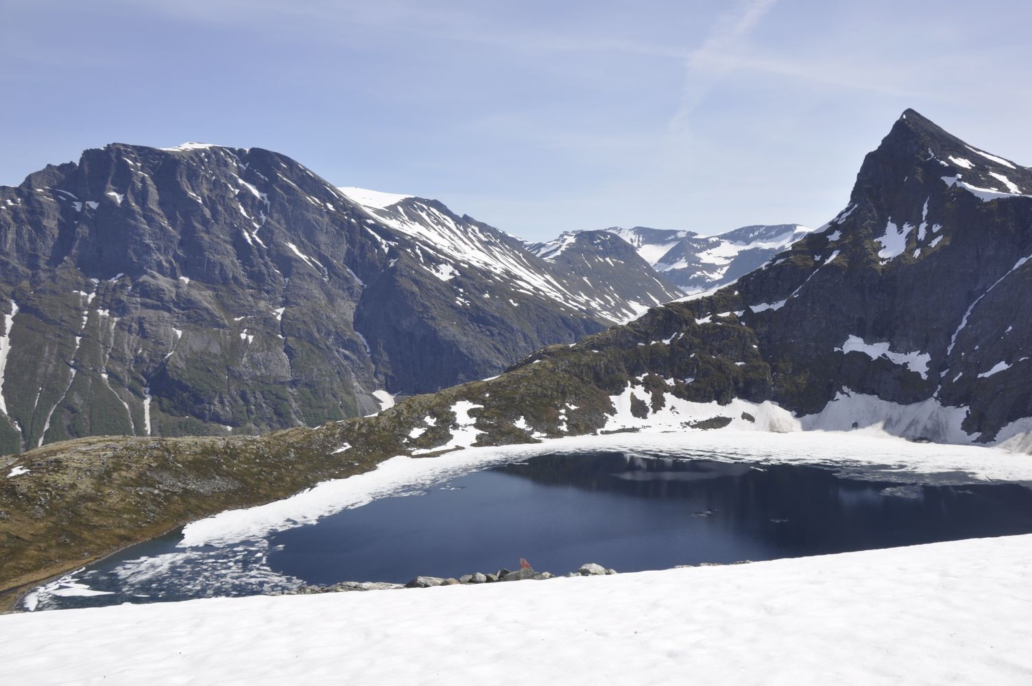 Turen startar på rasteplassen på Eide. Her er det informasjonstavle og informasjon om turane i området. yrste del av turen går langs med vatnet på vestsida. Etter eit par hundre meter svingar du av mot vest. Ved den øvste hytta her går du over ei steinklopp og held fram på god rås oppover den bratte lisida. Råsa slynger seg oppover den breie ryggen. På kvar side av ryggen er det ei elv. Området er framleis ope, men etter at det vart slutt på geitehaldet på Eide, ser vi tydeleg at attgroinga er på sterk frammarsj.