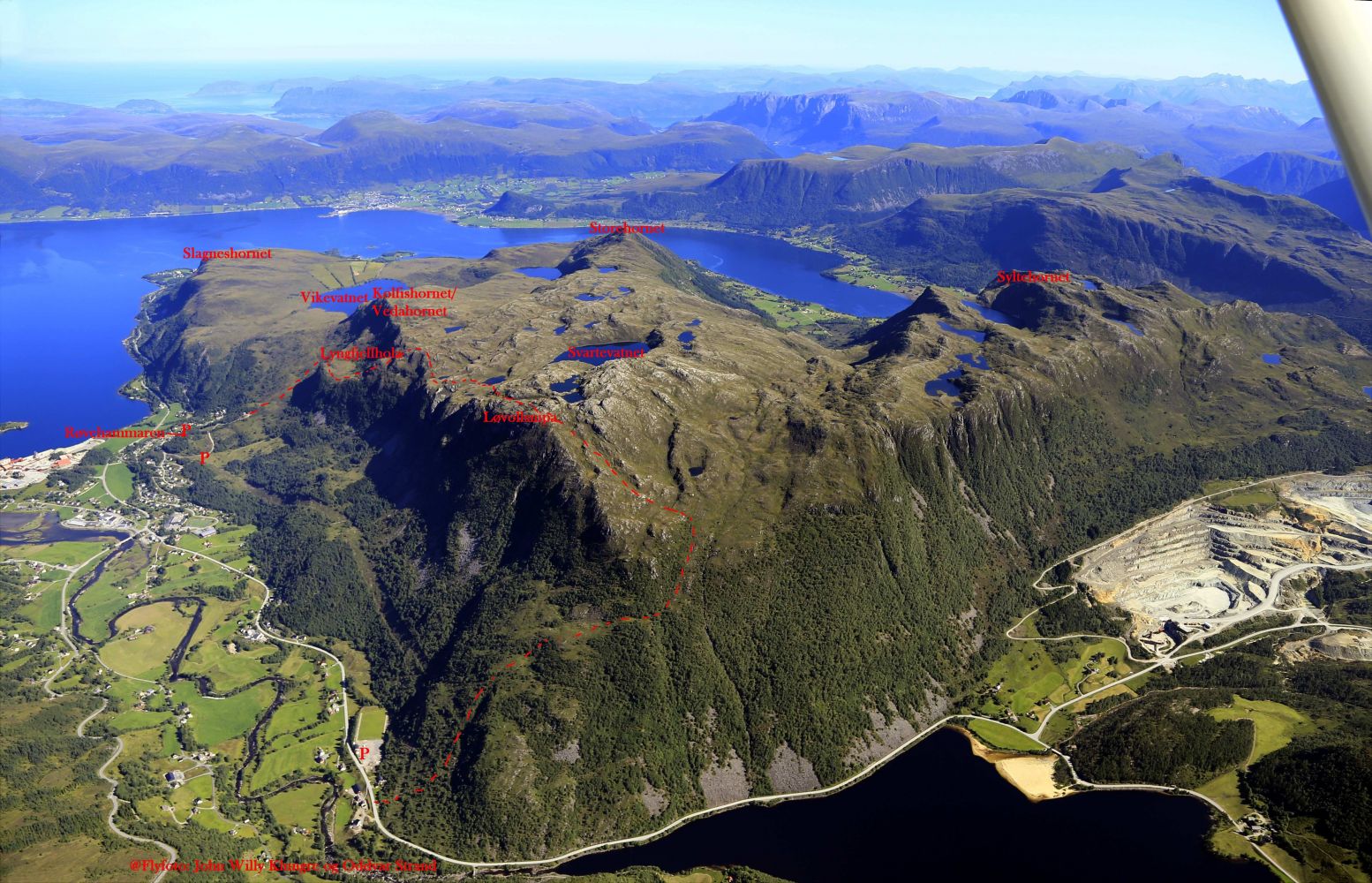 Løvollsnipa er eit flott utsiktspunkt som ein kan nå både ved å gå opp fra Løvold (100 m forbi Åheim stadion) eller ved å gå fra byggefeltet (Torvik-feltet) på Åheim via Lyngfjellhola. Her beskriv ein turen opp frå byggefeltet på Åheim, via Lyngfjellhola til Løvollsnipa og ned att til Løvold/Åheim stadion.