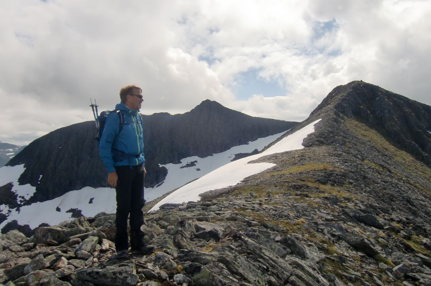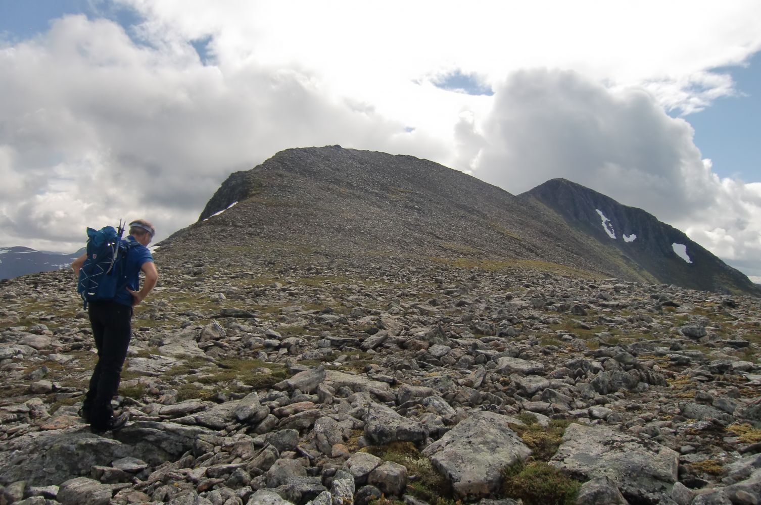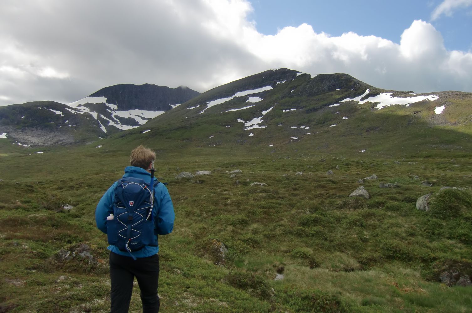 Start frå p-plass ved Lisjebøvatnet og gå rett sør forbi ein særs markert morenerygg og opp på Geitemjølkegga. Følg egga vidare til topps.