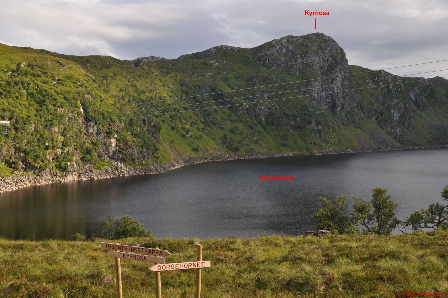 På ca 340 moh er det slutt på trappa. Ein fortset då på tydelig sti opp til ca. 390 moh der Storevatnet openbarer seg. Vidare er det ein lett tur på merka sti opp til Gorgehornet på 517 moh der ein har flott utsikt mot Vanylvsfjorden og utover mot Stadlandet. Ein ser også området innerst i fjorden der innslaget til Stadtunnelen er tenkt.