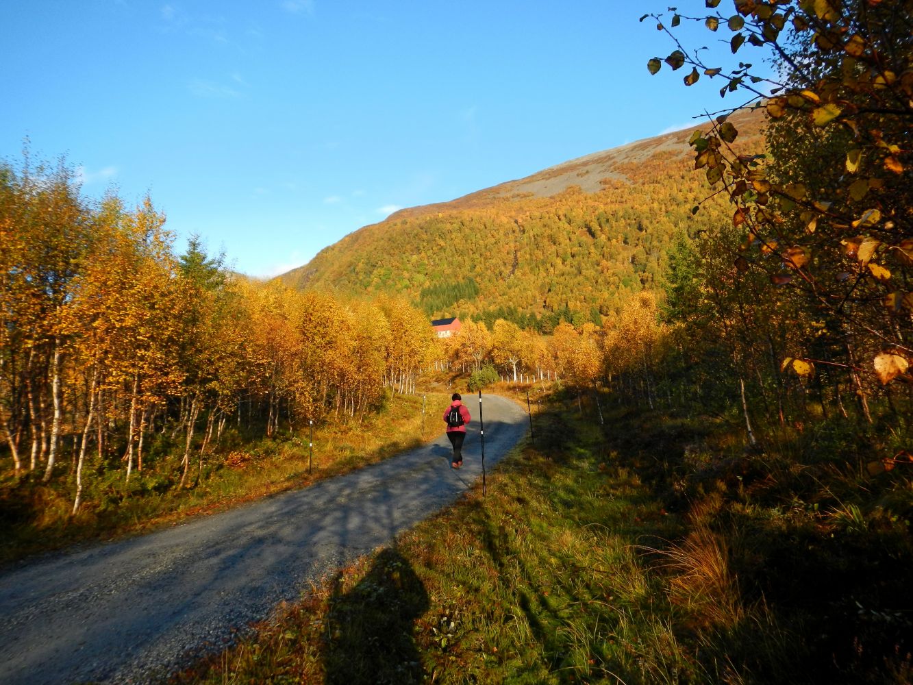 Her tar vi en rast før vi går vestover, noe kliving ned mot skaret der kraftlinja fra Molde til Fræna går. Så opp igjen og innom Julskardtind og fram til gjesteboka på Galten. Herfra litt sørover og inn på stien forbi "Klompevatna". Noe vått i skogen mot slutten. Vi brukte fire og en halv time på turen som i lengde er 9,8 km i følge vår GPS. Den forteller også om en stigning totalt på 958 meter og et fall på 1084 meter.
